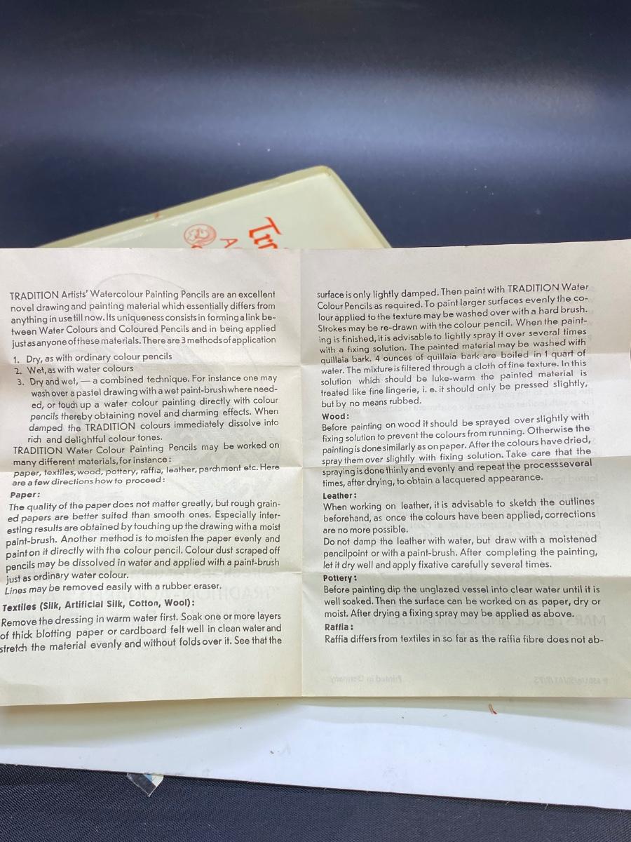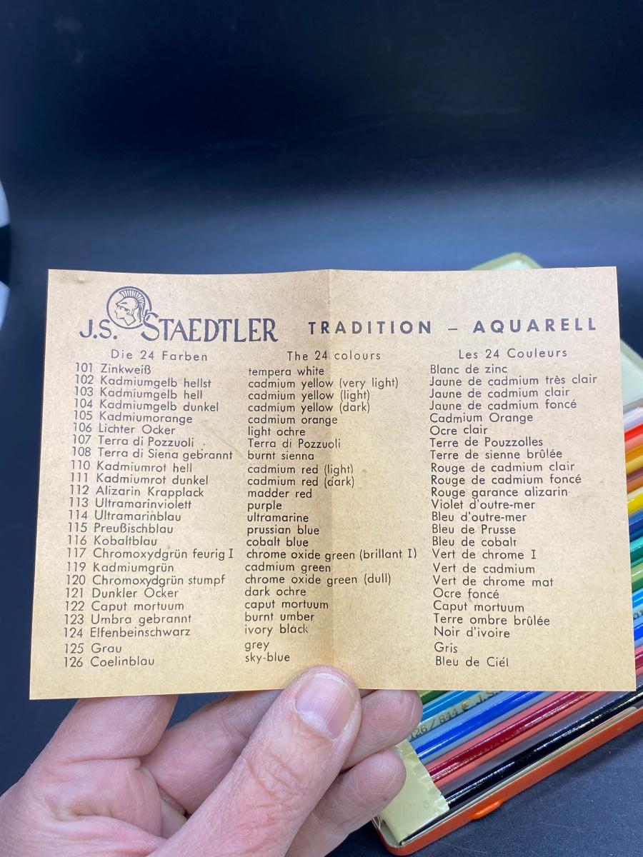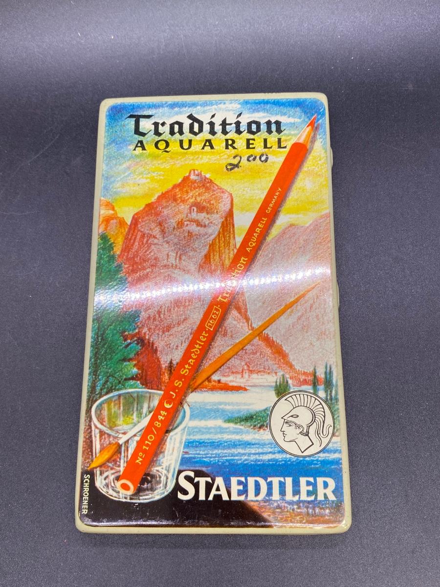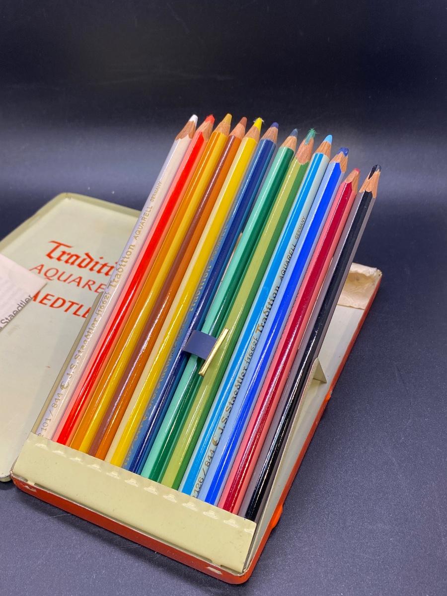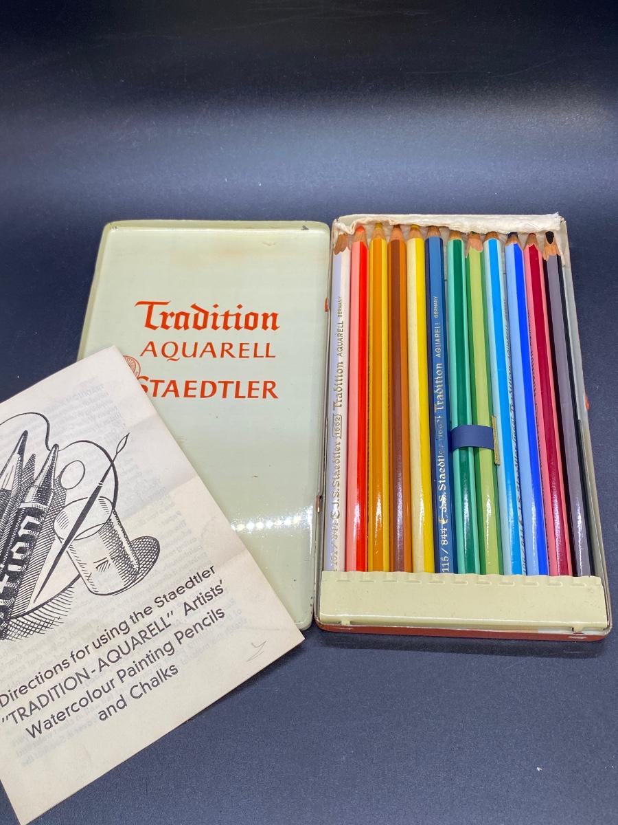 Vintage set of Staedtler Tradition Aquarell colored pencils. In good used condition. Pencils can be used for drawing then blended with water like watercolor paints.