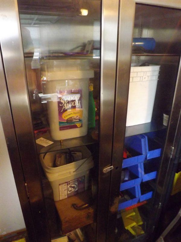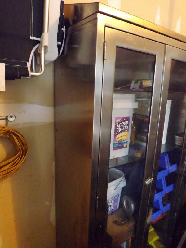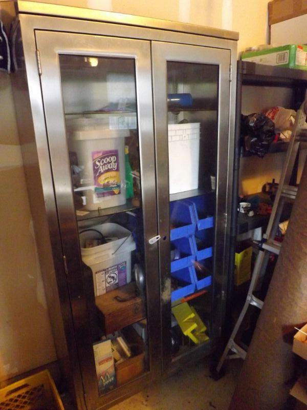 Vintage stainless steel and glass medical locker. Items inside not included. Approx 72" tall. **Please read Terms and Conditions before placing a bid. Pick up is Sunday, September 1, 2019 from 10am to 4pm in Williamstown. All sales are final. All sales are as is, where is. Please review all photos. Any props included in photos are not included in listing. All measurements are approximate.
