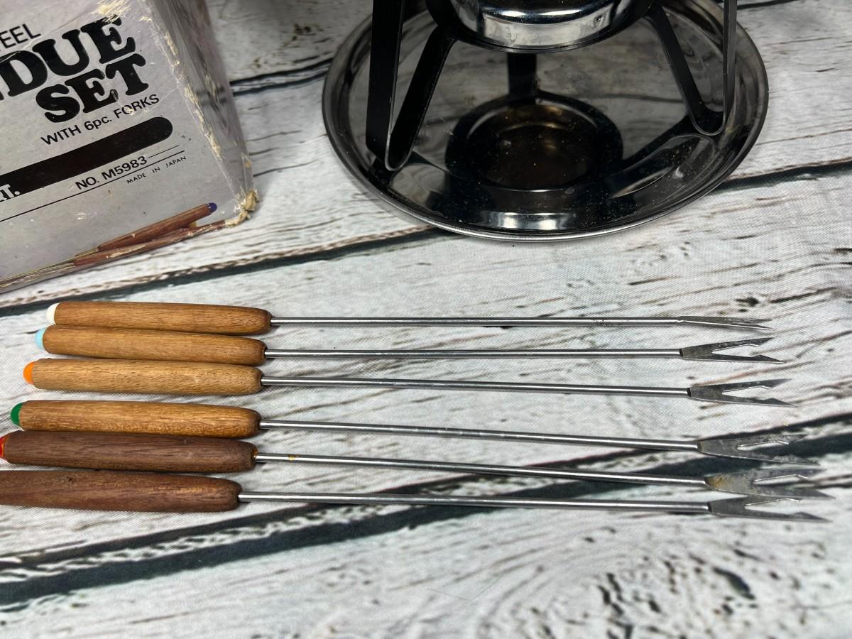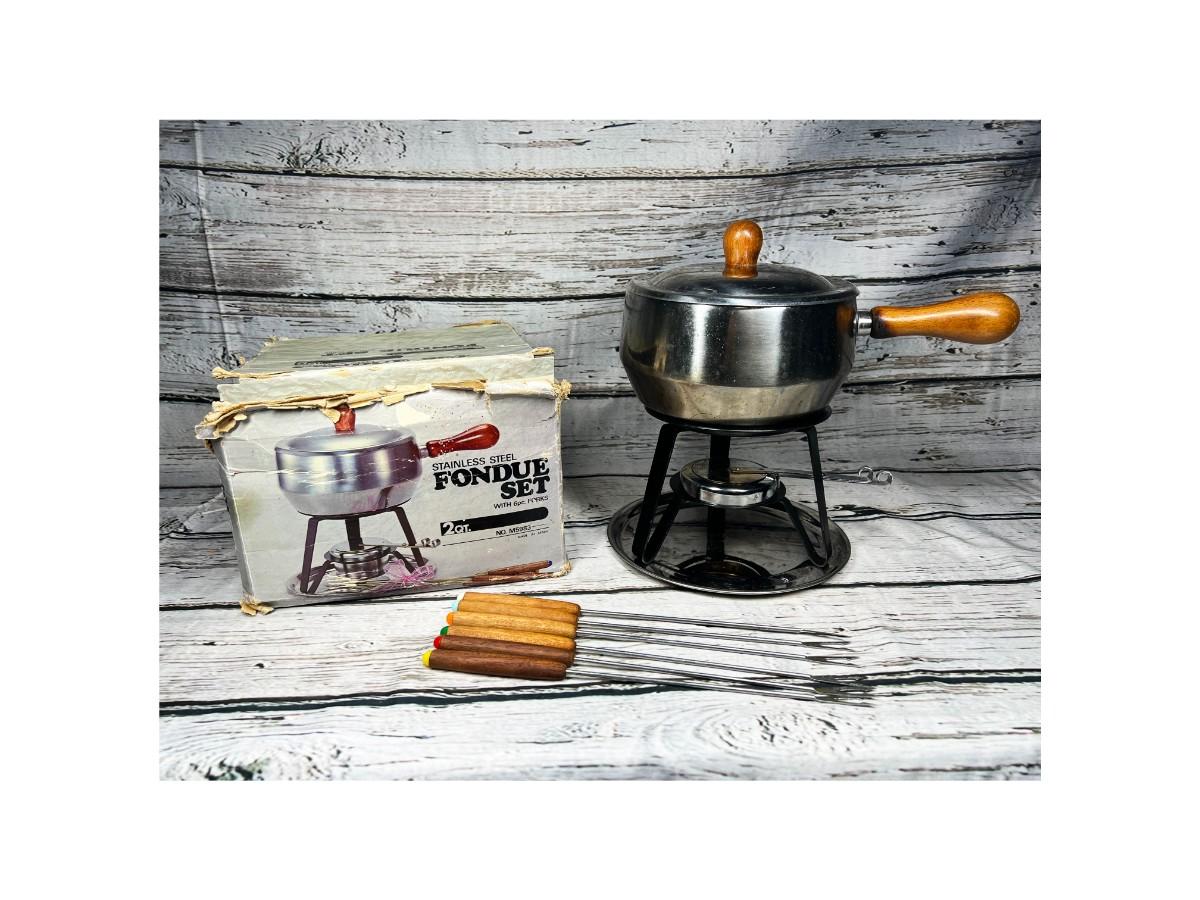 Vintage Stainless Steel Made in Japan Fondue Set with 6 Piece Forks