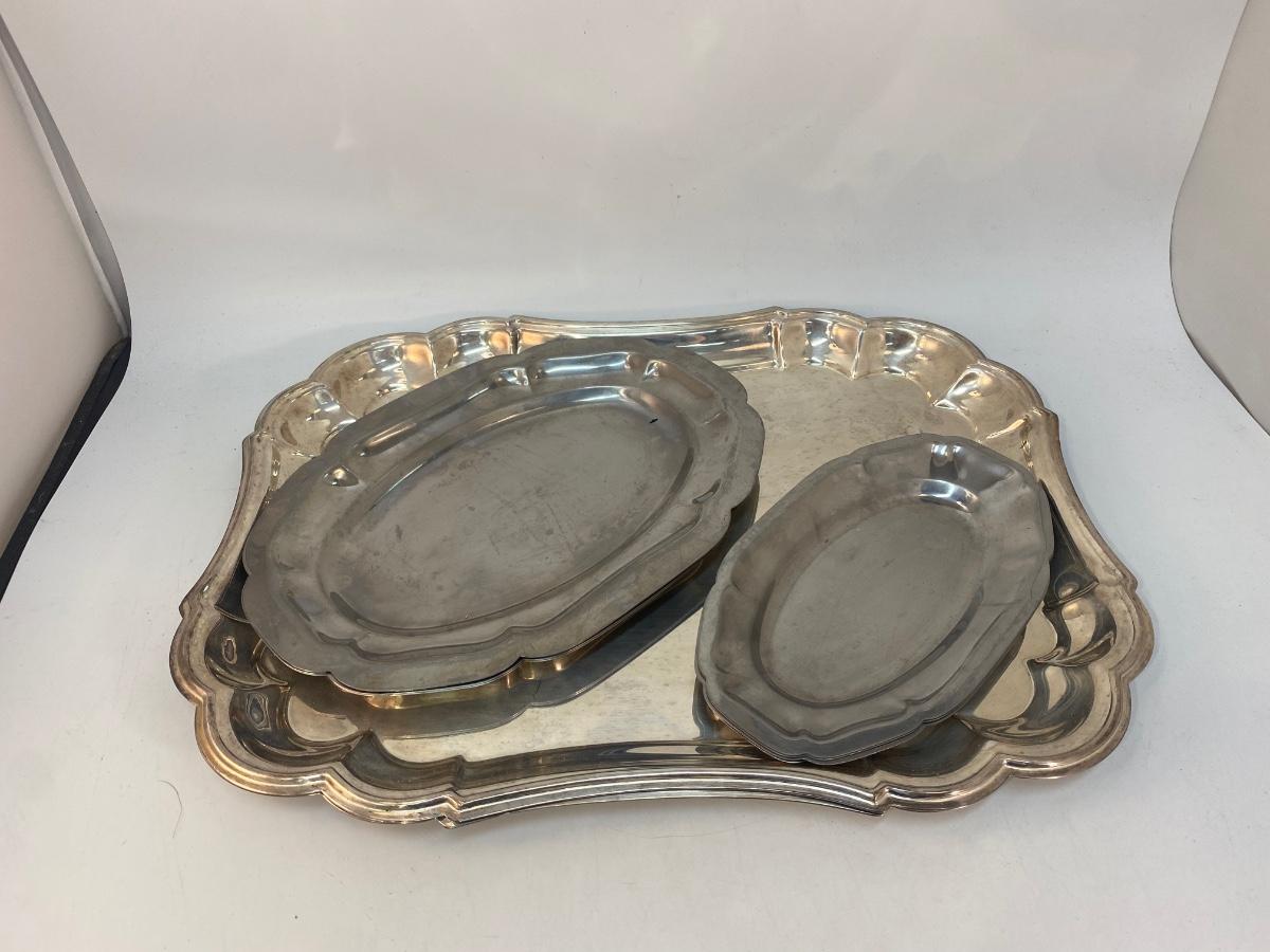 Vintage Stainless Steel Silver Plate Serving Trays 3 Sizes