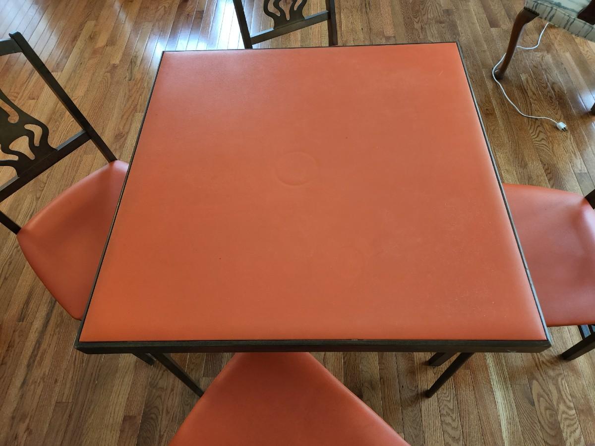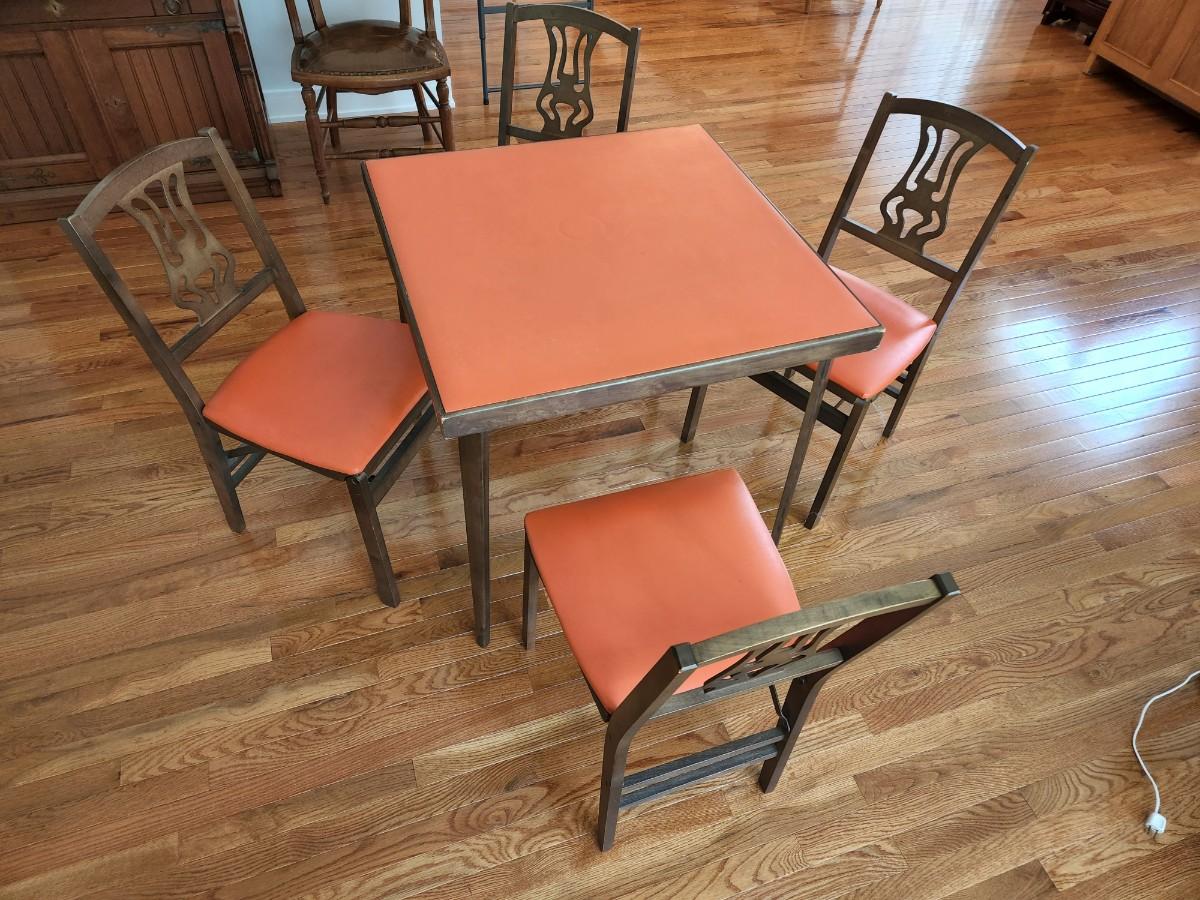 Vintage Stakmore Co. Card Table with 4 Harp Back Folding Chairs