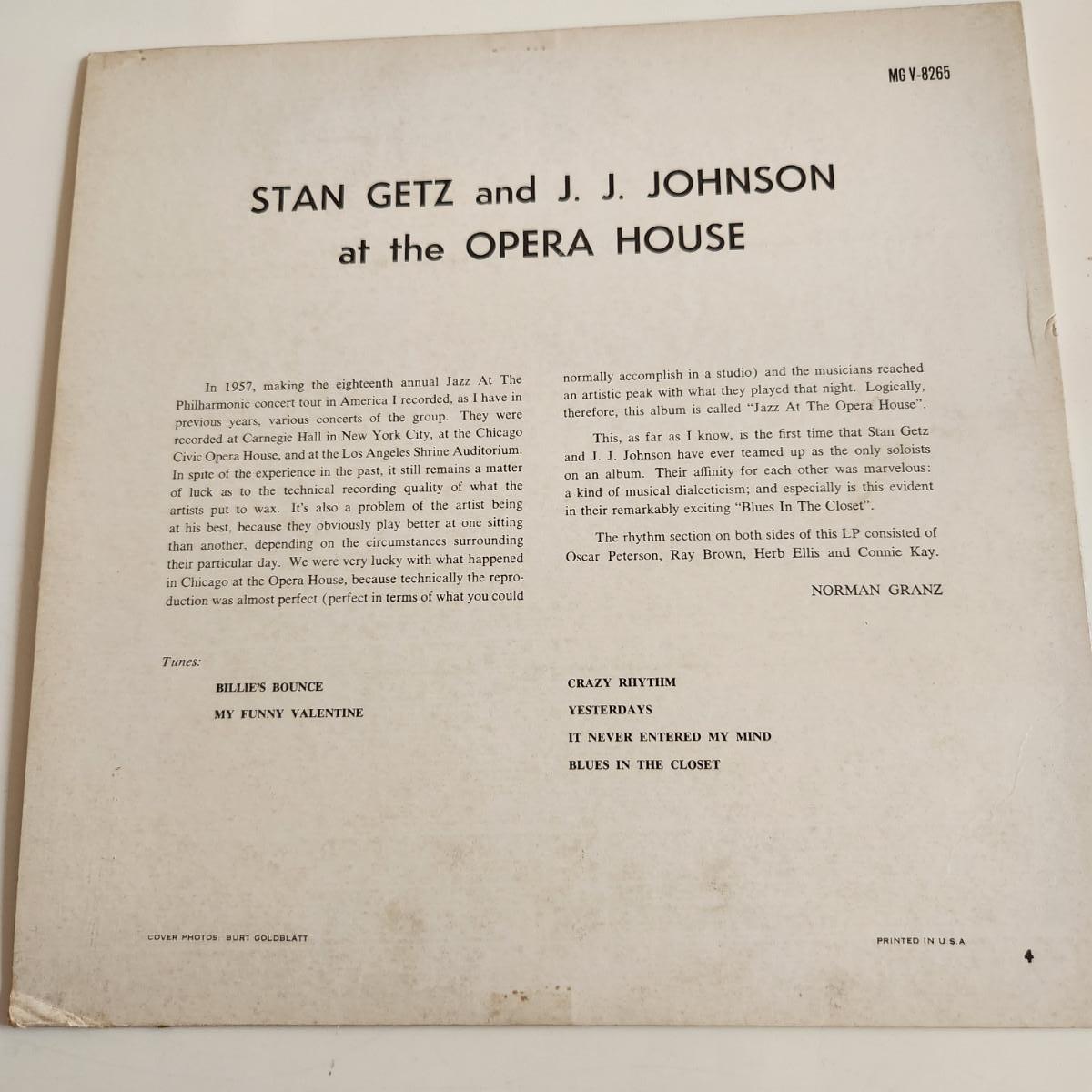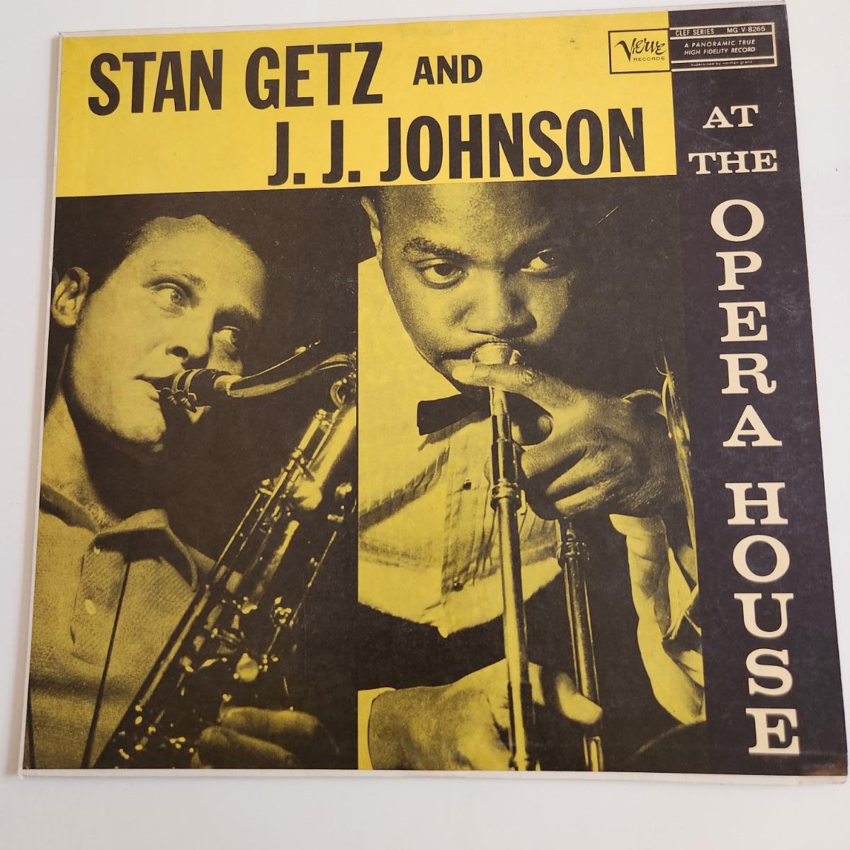 This auction lot is for a Vintage Stan Getz Vinyl Music Album Cover. This is Stan Getz and J.J. Johnson at the Opera House on the Verve Label. The vinyl record itself was cracked and has been thrown away. However, this is a very clean and good cover that we felt someone may need or want to frame.