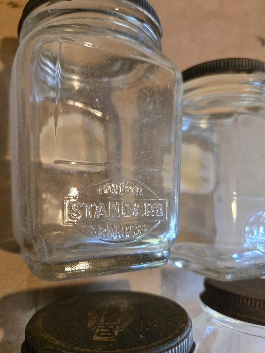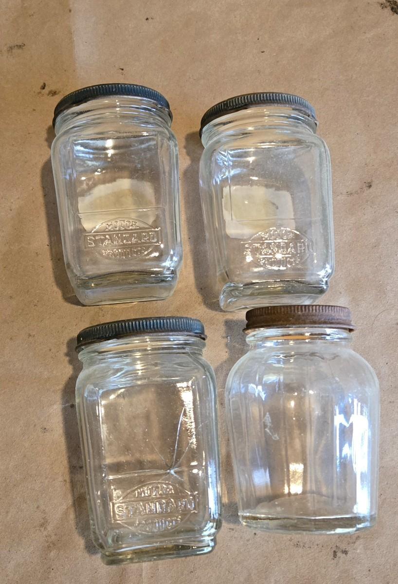3 Standard Oil jars, 1 is broken but intact, unknown maker in 4th jar