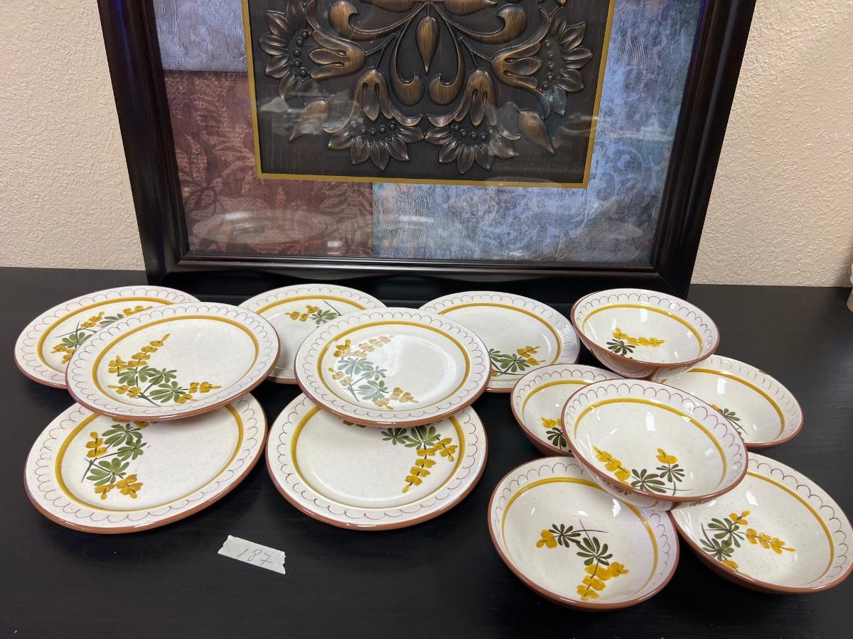 Vintage STANGL Pottery Golden Blossom, Dinner plates and deep mini bowls