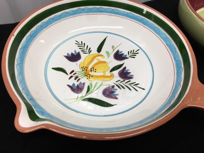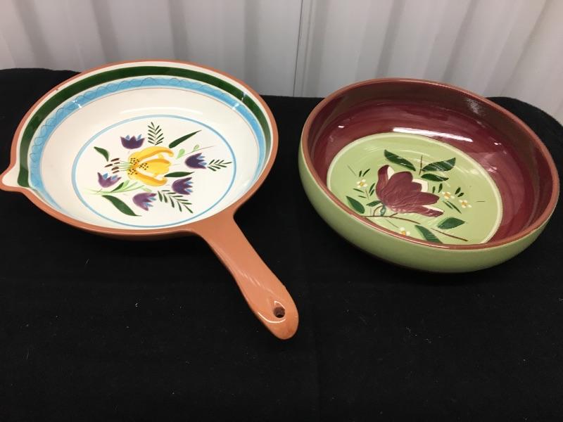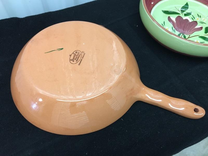 Beautiful and rare pottery pieces being sold as one lot. Condition is very good on both. The skillet has one tiny “flea bite” chip on the rim. See pictures.