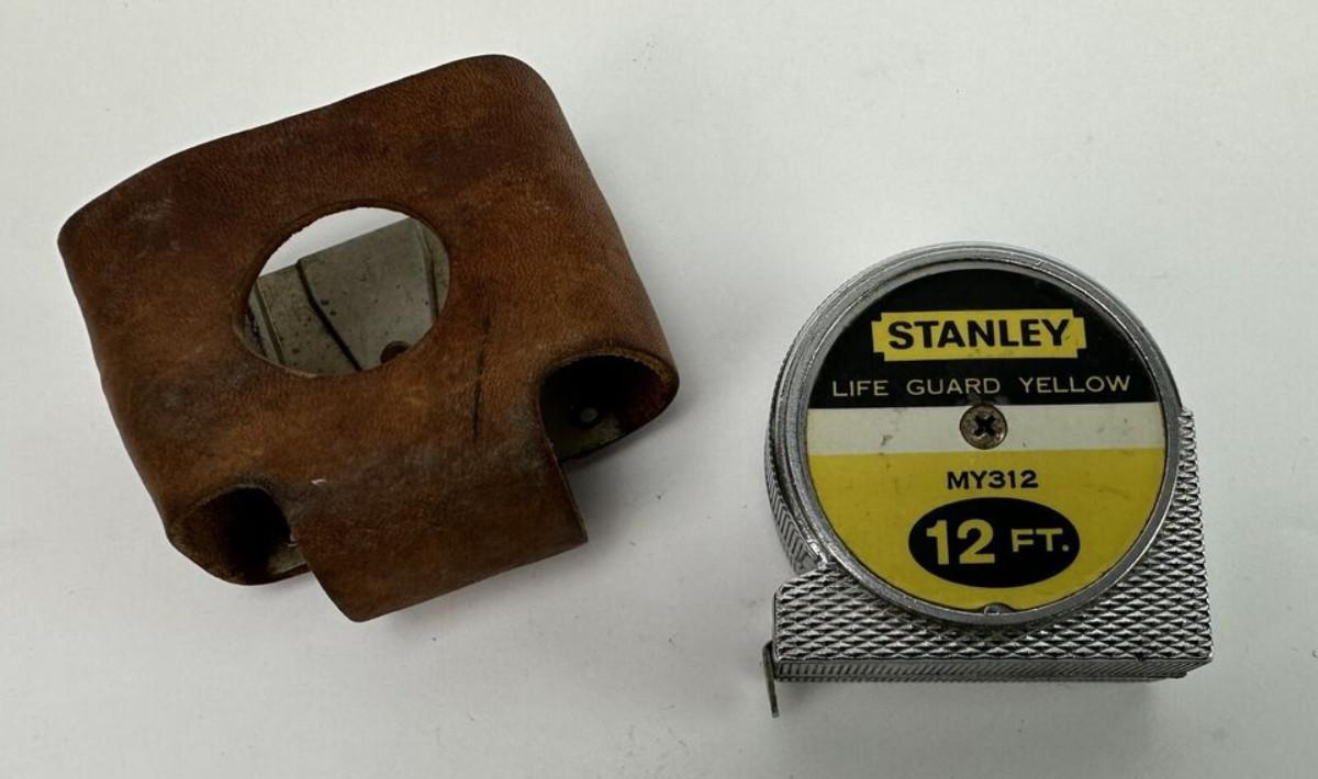 vintage STANLEY 12 FT TAPE MEASURE & LEATHER BELT CLIP HOLDER