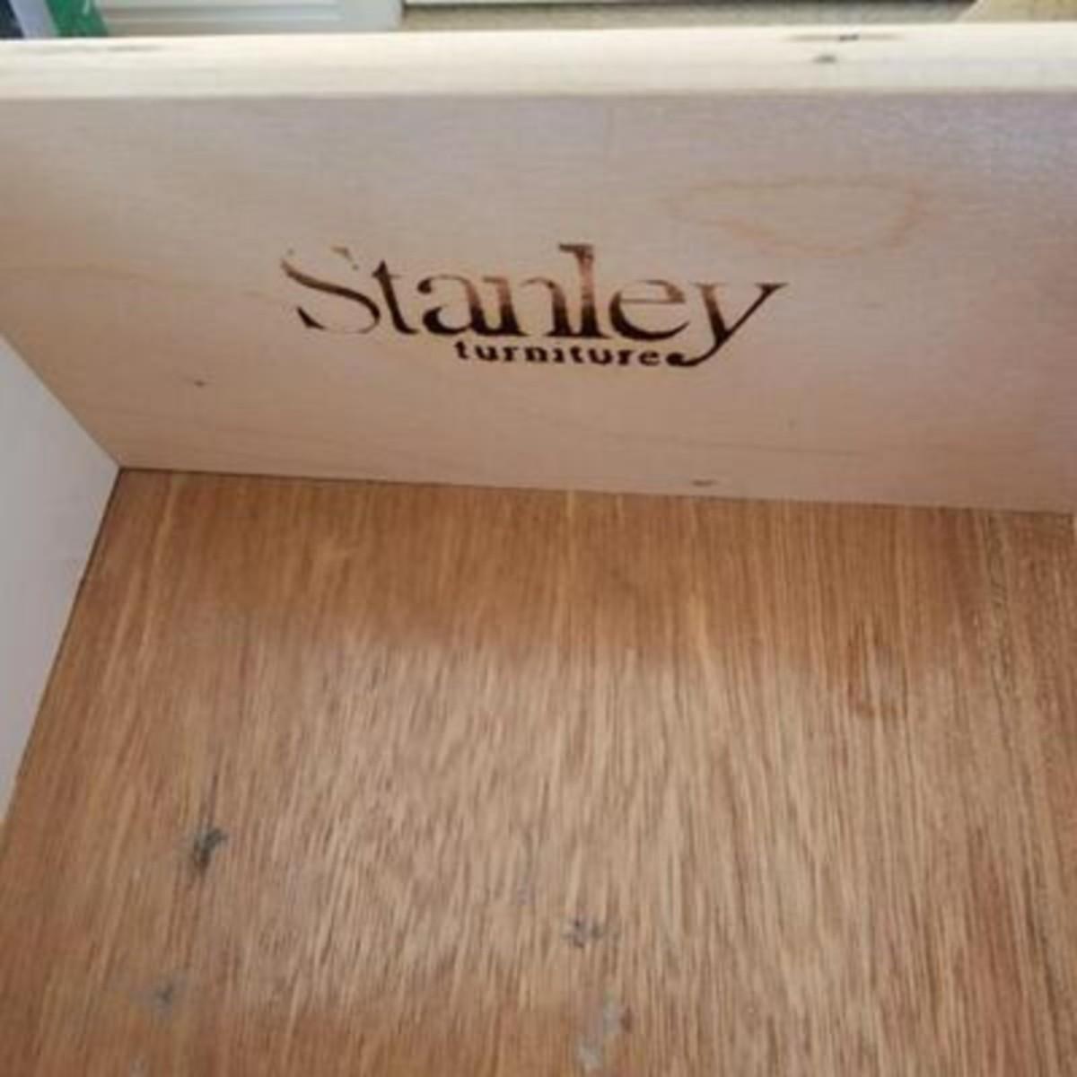 Vintage Stanley Furniture White Make Up Vanity Dressing Mirror Table. Three drawers on either side. Triple mirror top, outer mirrors are adjustable for just the right viewing angles. Does not have a center surface but can support one if needed. Measures about 22"dx73"hx58"w. Mirror is removeable with screws. Good condition. LOCAL PICK-UP ANAHEIM