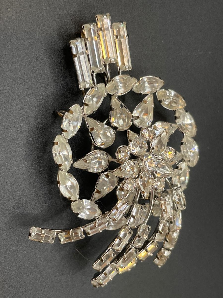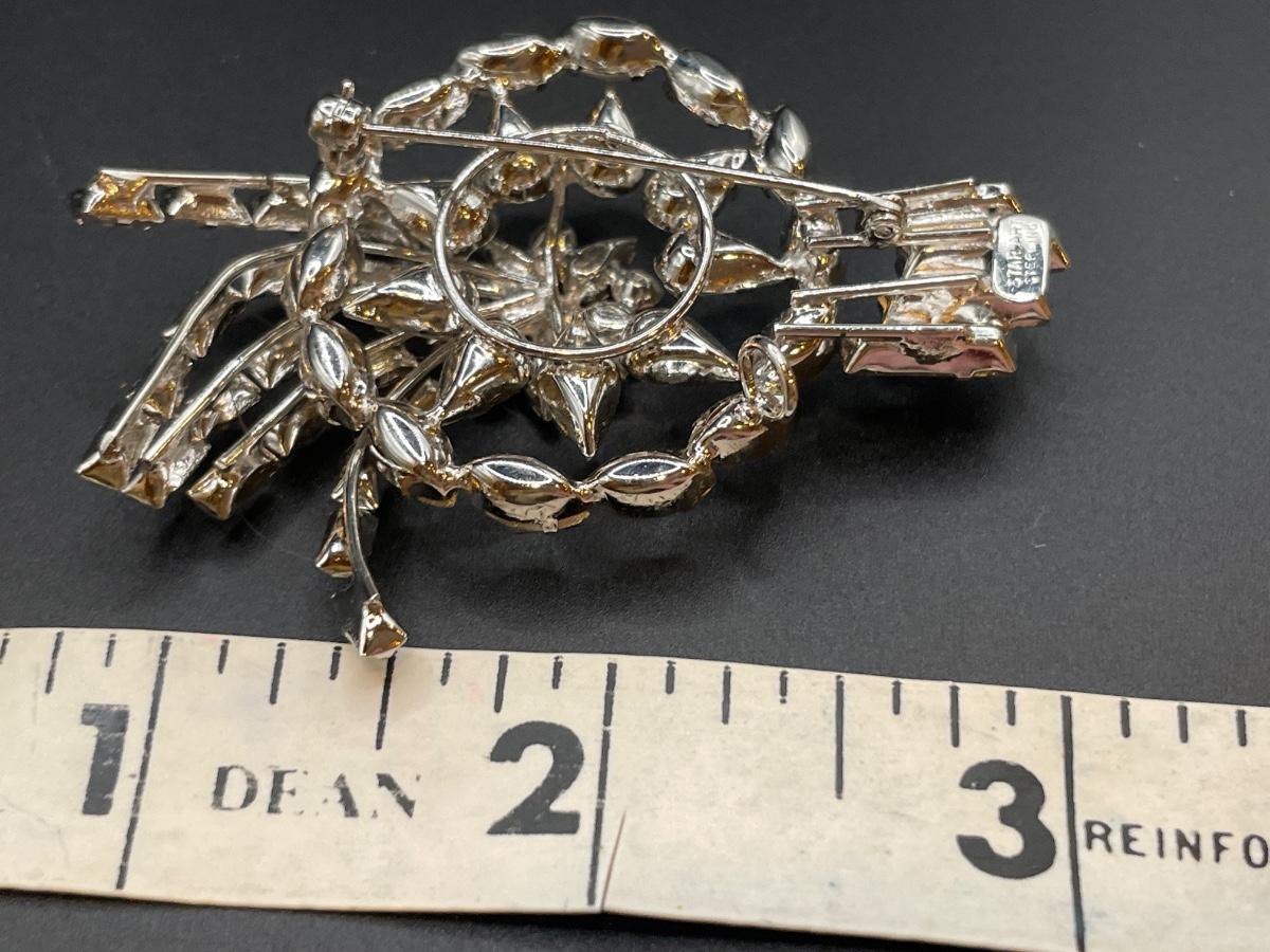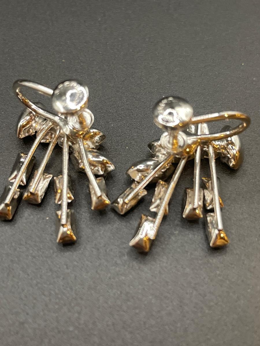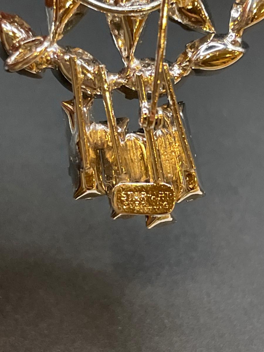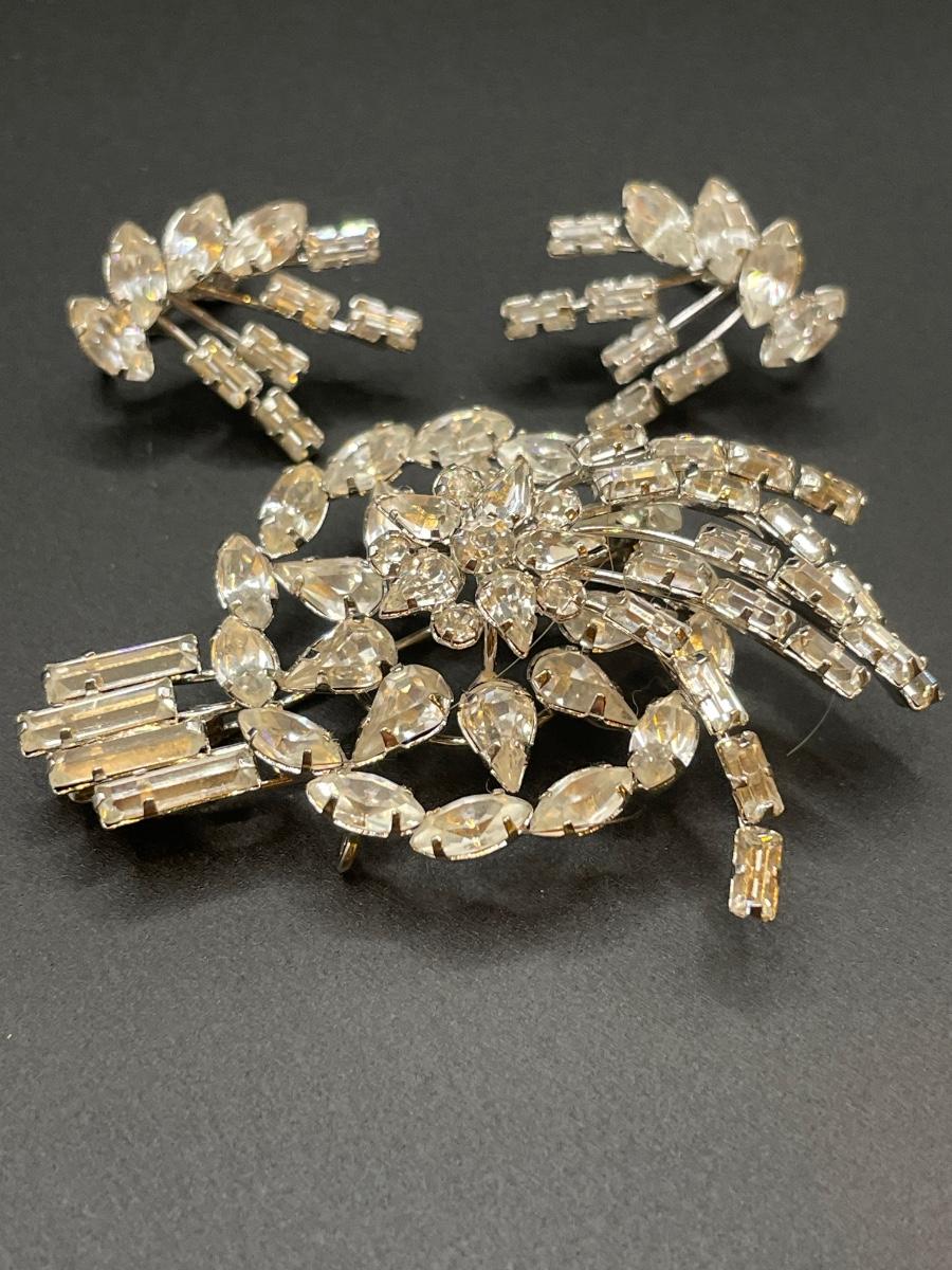 Vintage Starburst Sterling clear rhinestone brooch and clip on earrings