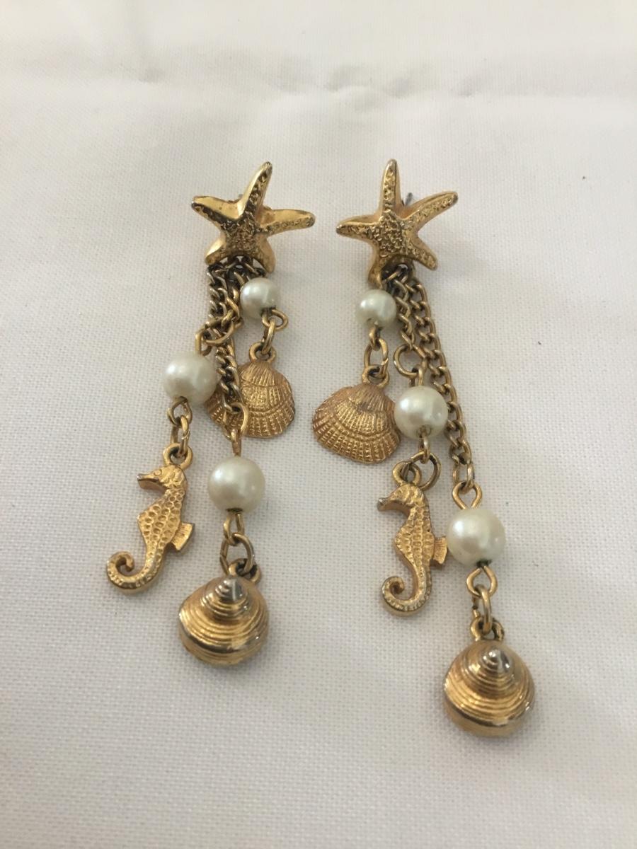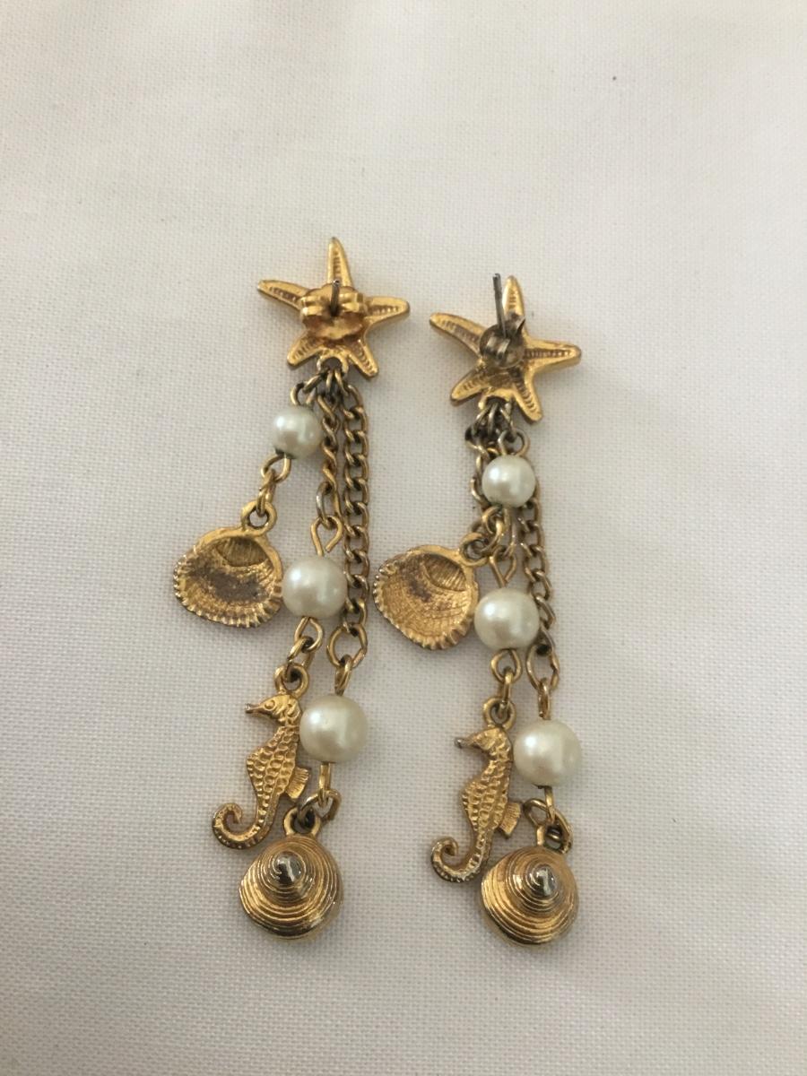 Vintage starfish, seahorse, charm stud, dangle earrings