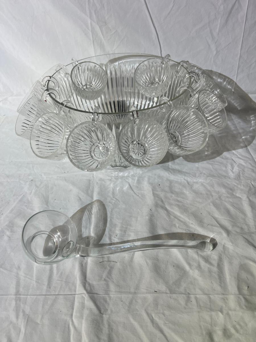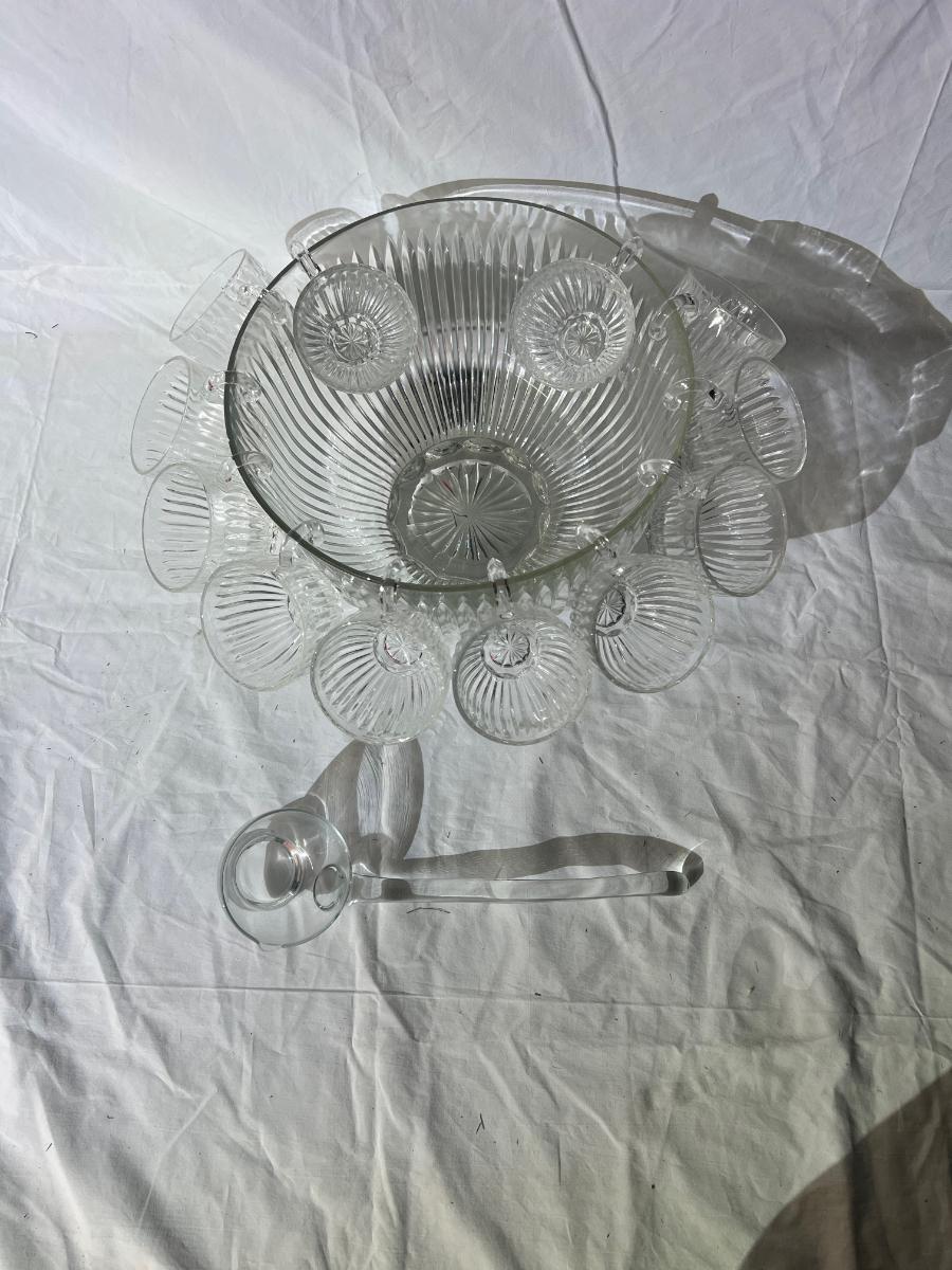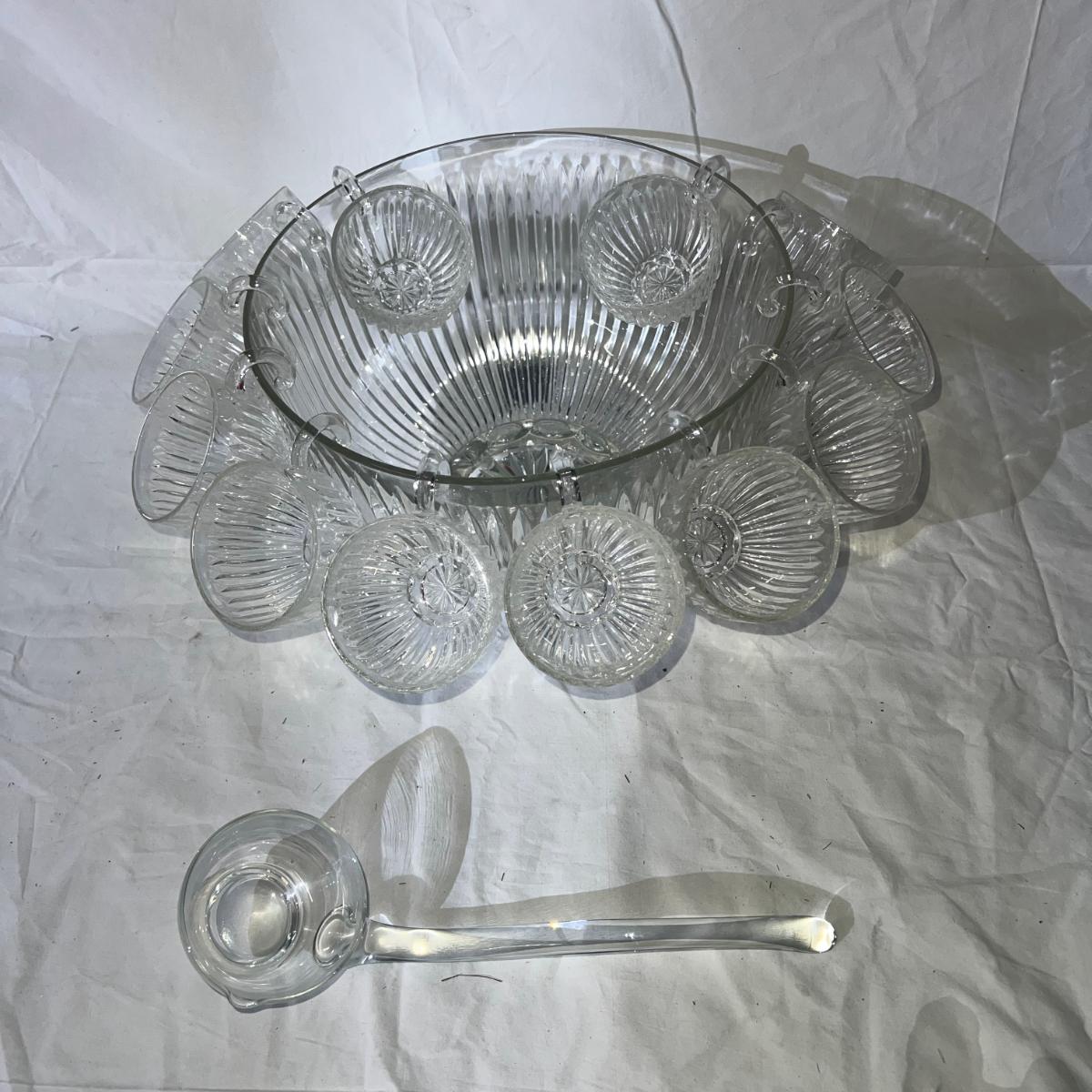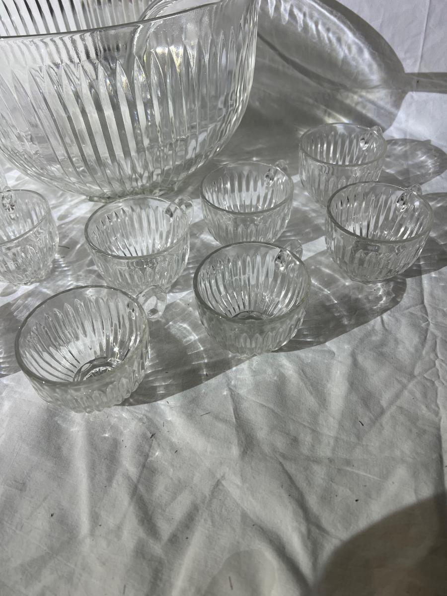 Vintage Starlight Glass Punch Bowl Set with glass ladle and 12 cups