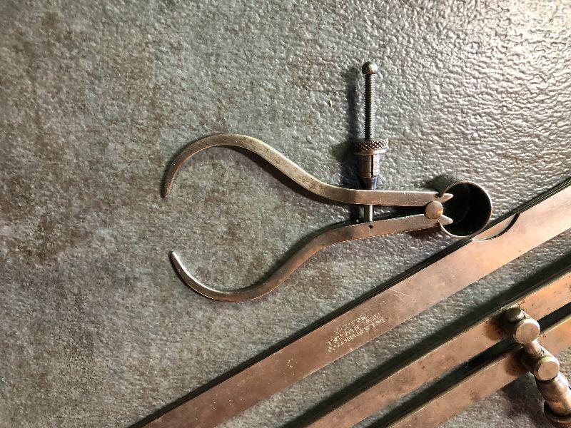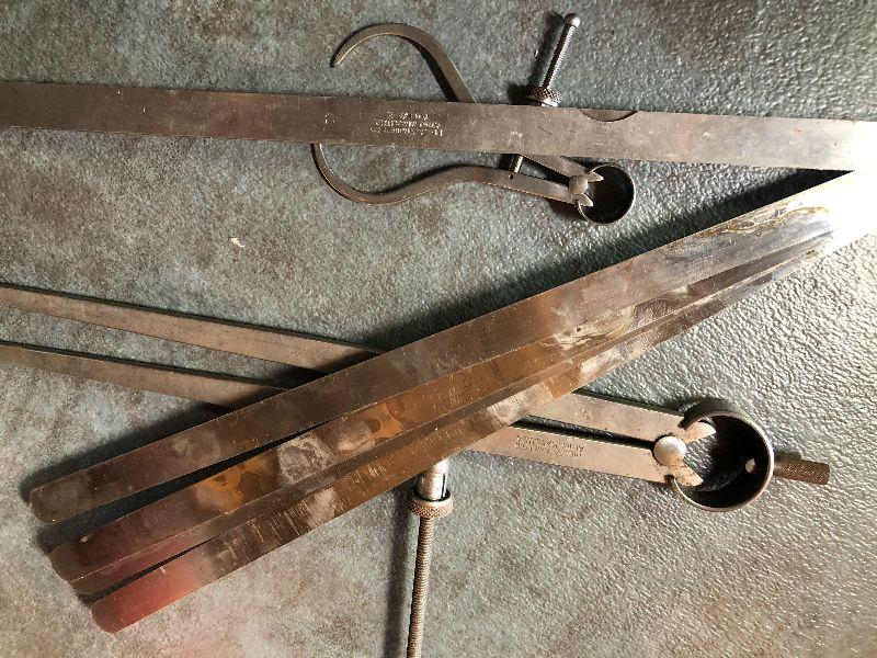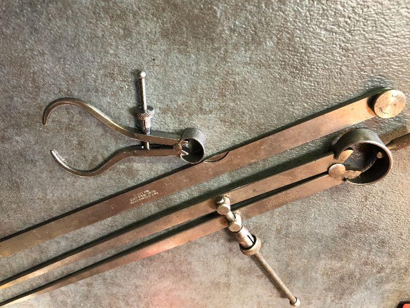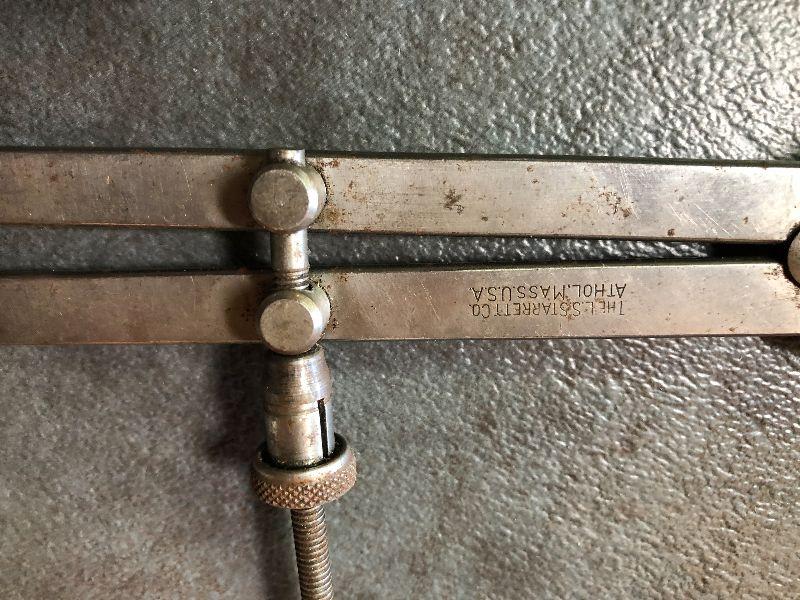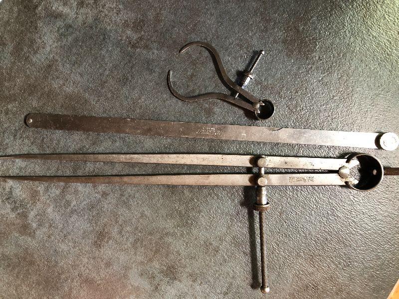 143: Vintage Starrett Thickness Gage, Divider, and Calipers
