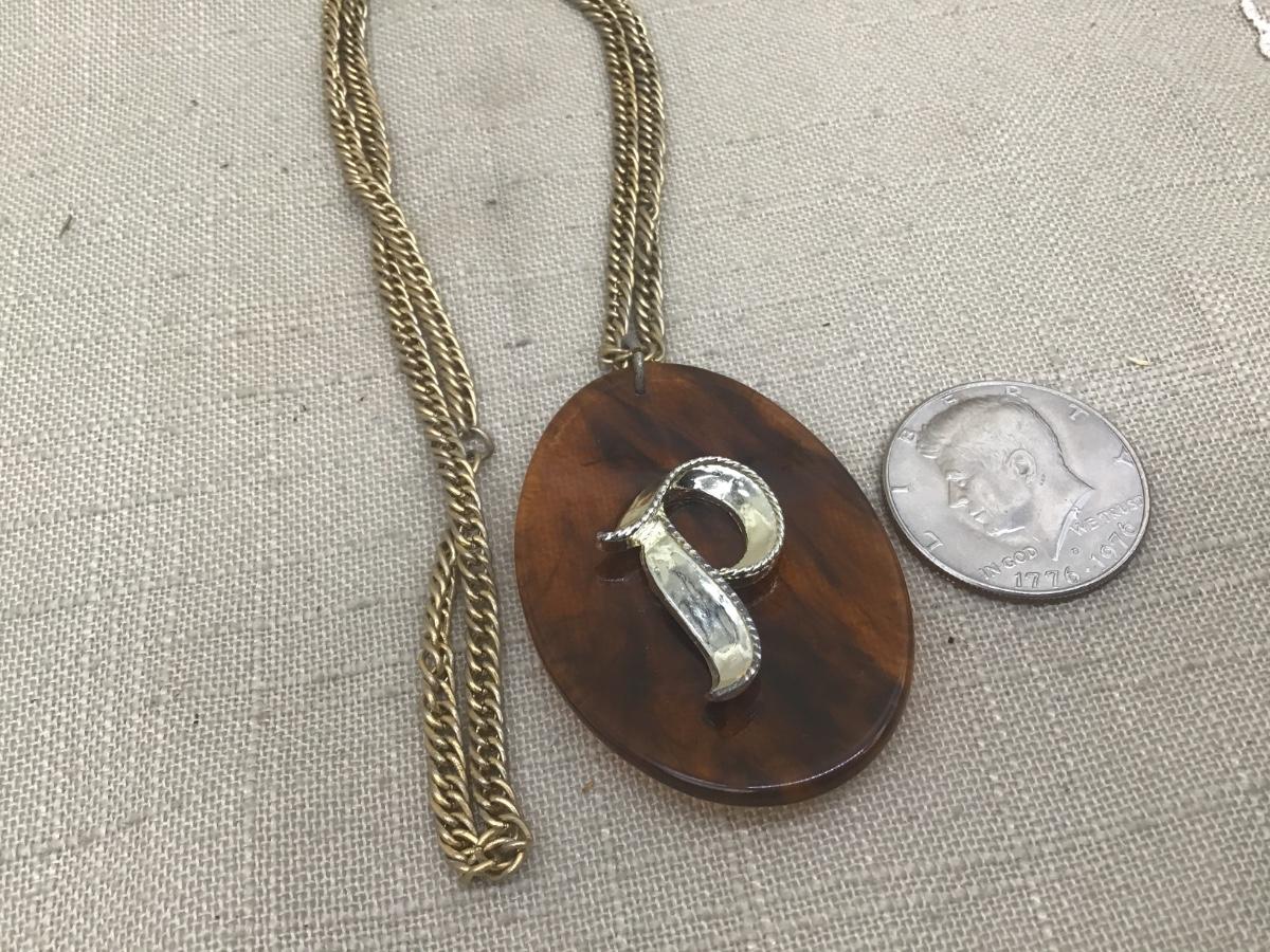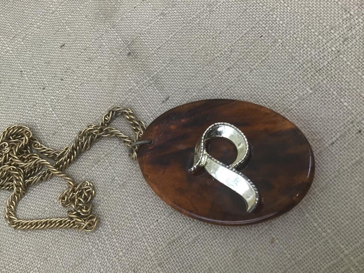 Vintage Statement Faux Tortoise Shell Necklace P Monogram
