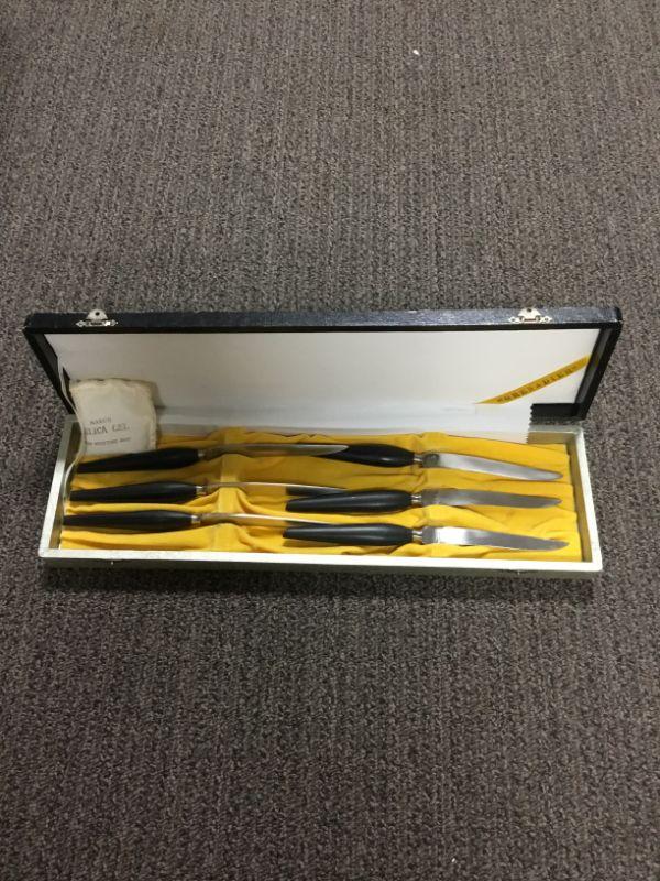 Vintage steak knife set. Set of 6, sleek modern look. Come in original case.