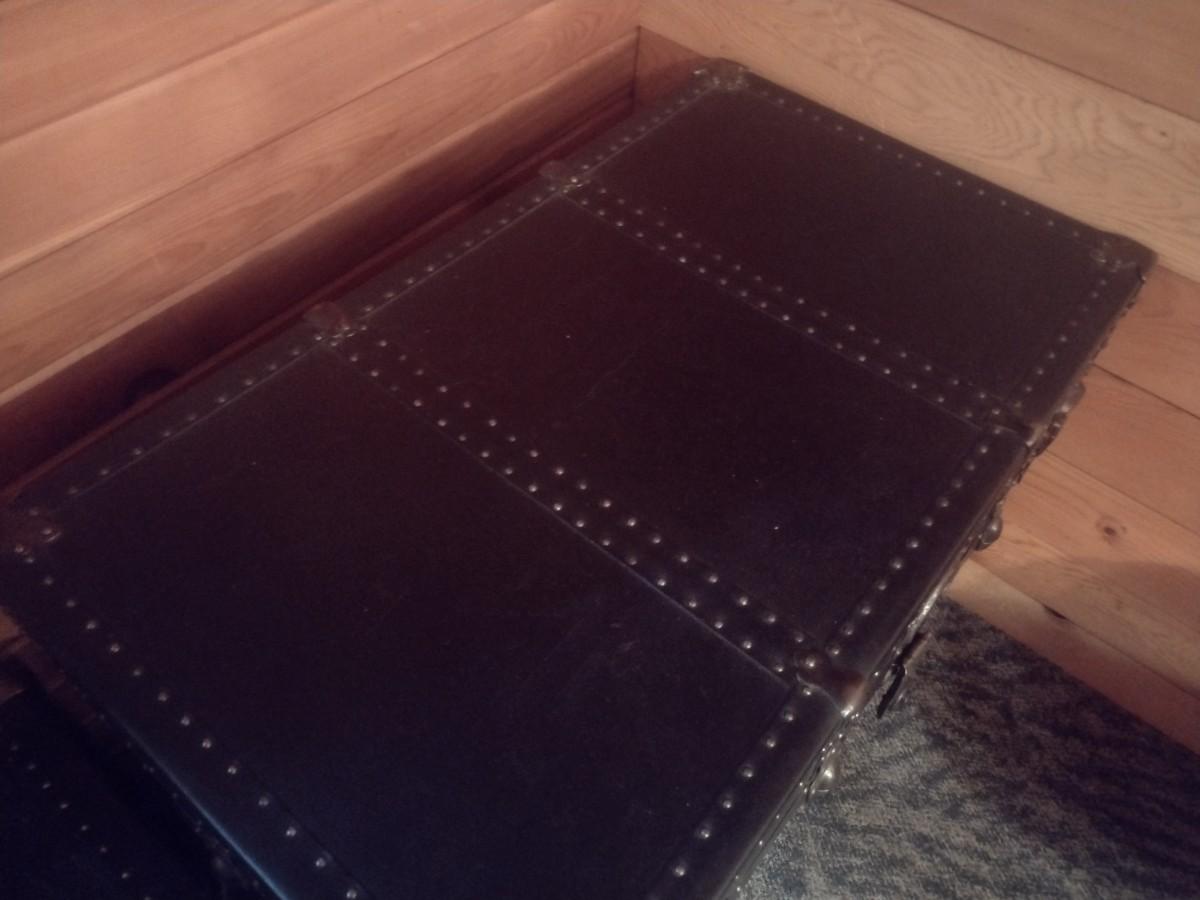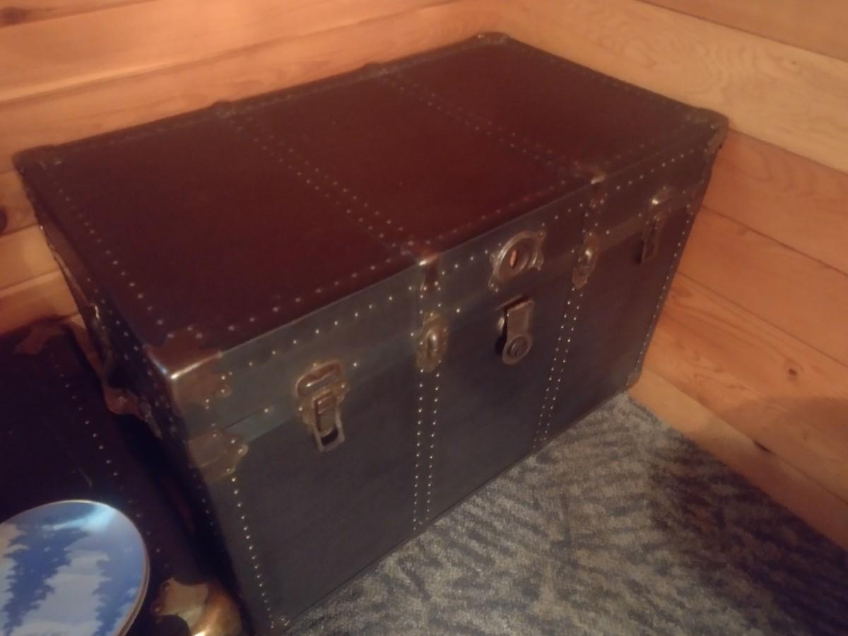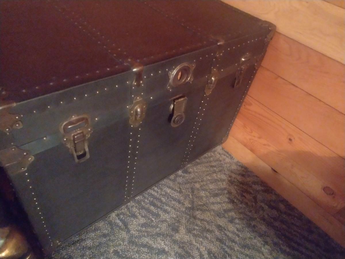 Vintage Steamer Trunk with Brass Tack Accents