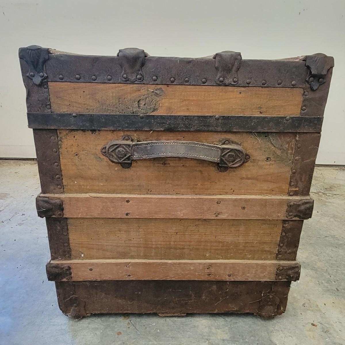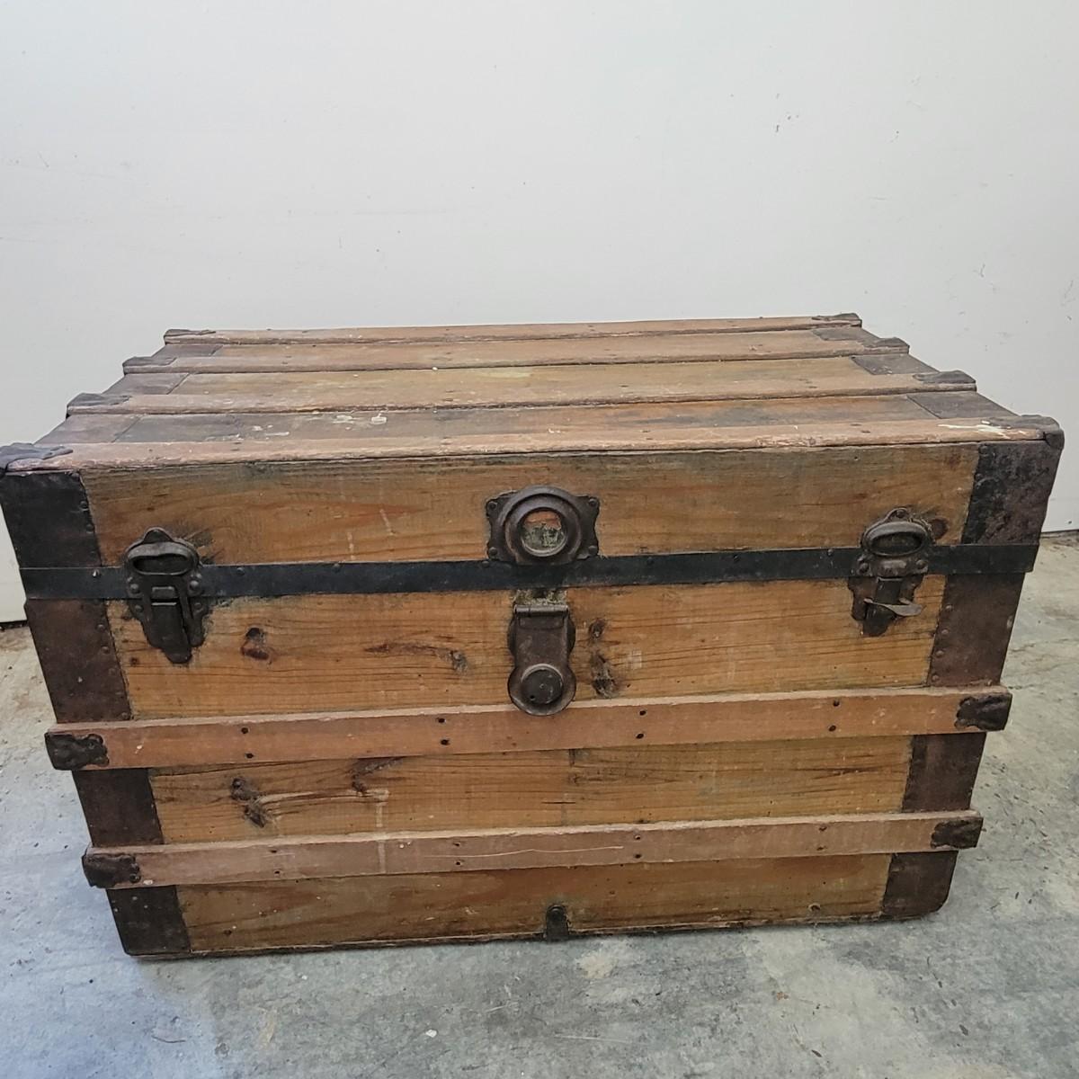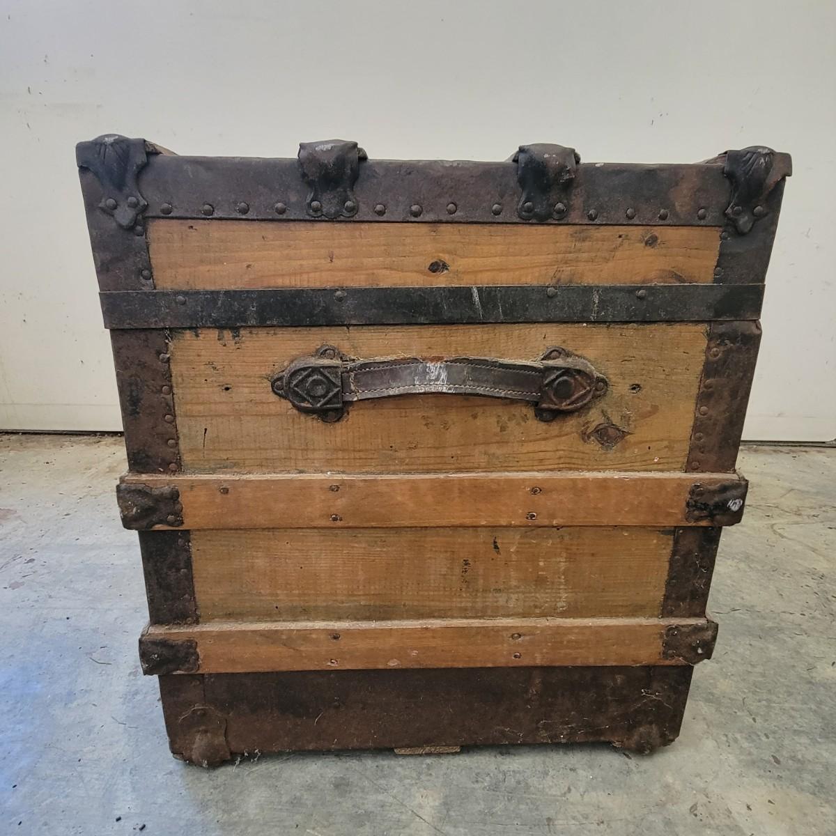 Vintage Steamer Trunk with Metal Hardware (G-DW)