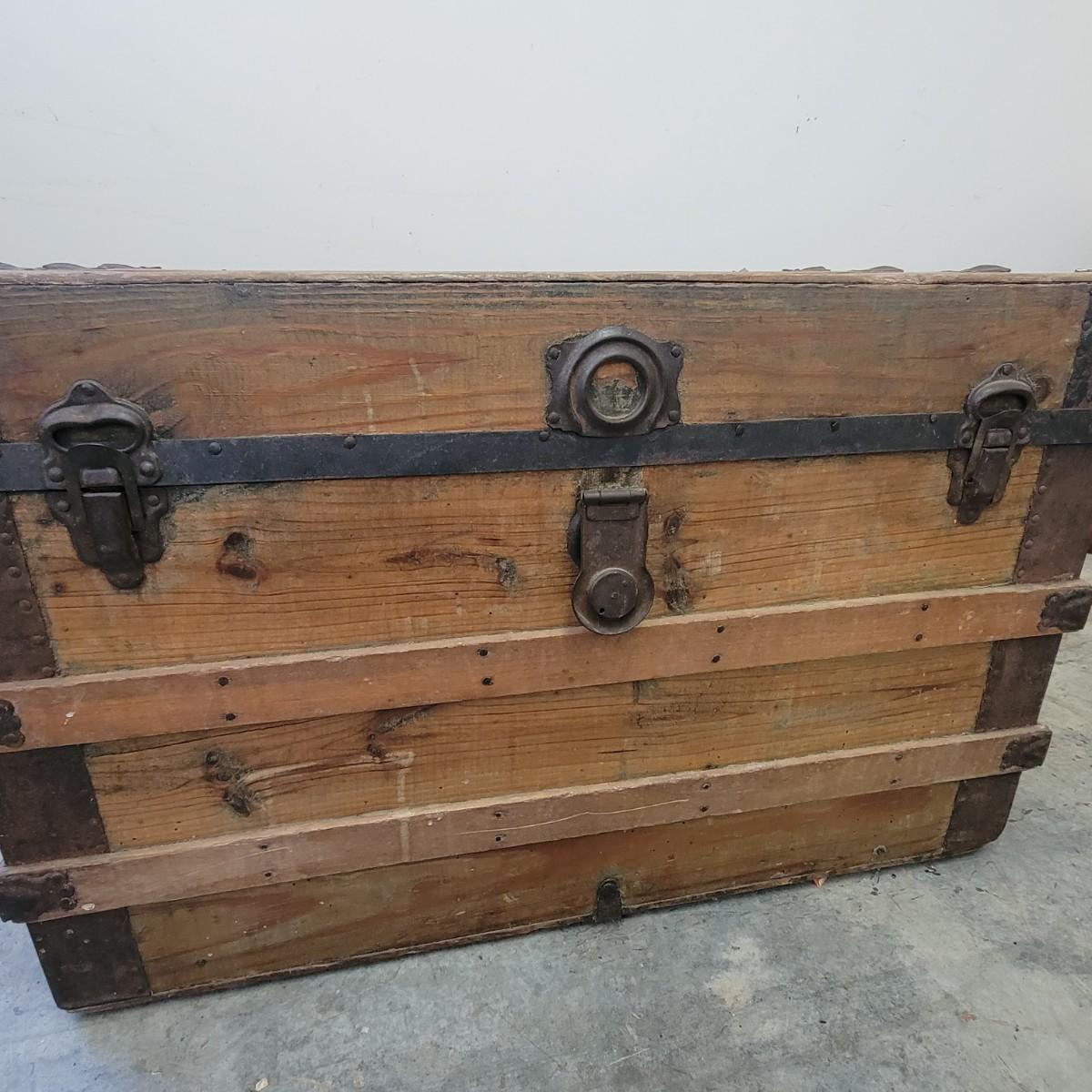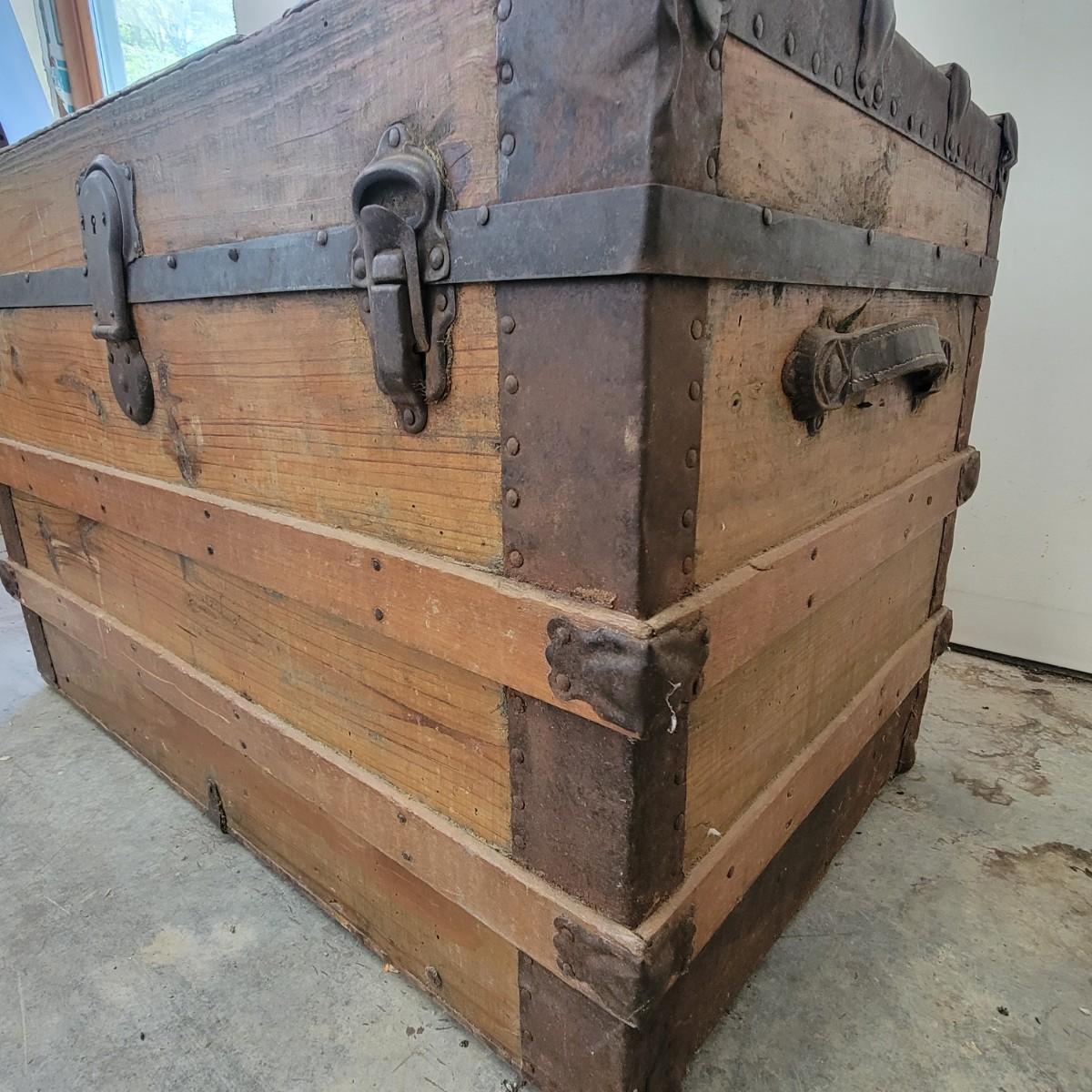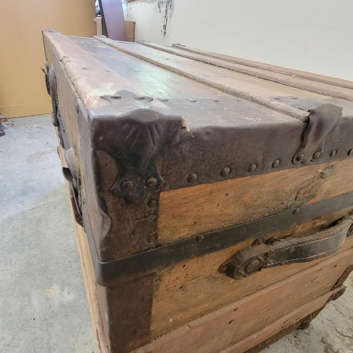 Vintage Steamer Trunk with Metal Hardware (G-DW)