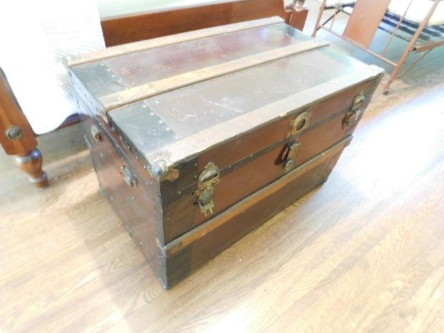 Vintage Steamer Trunk with Tray Insert upstairs item bring help to remove from house.