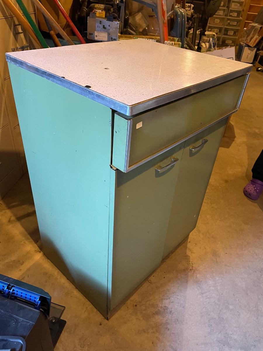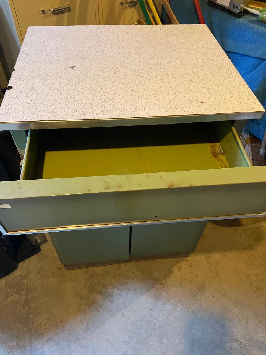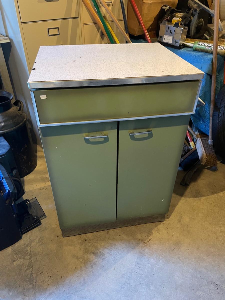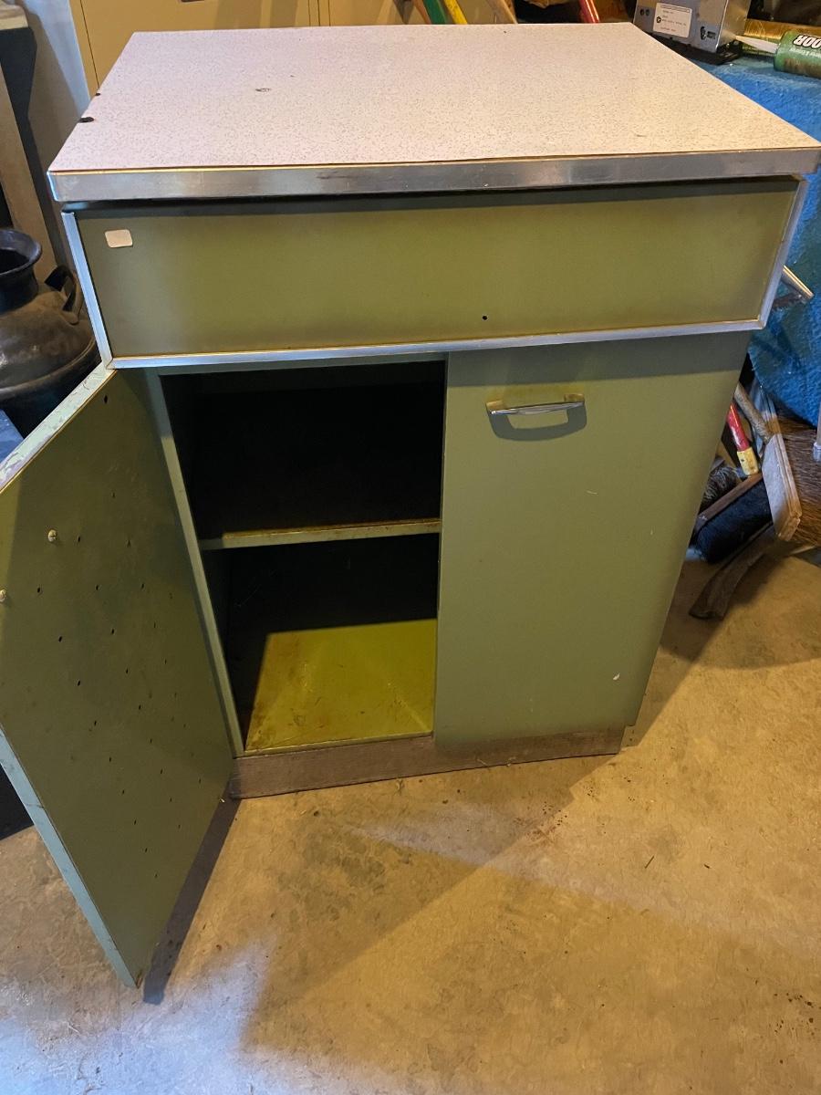 Vintage Steel Cabinet. Good Condition! Measures 24w x 20d x 36h