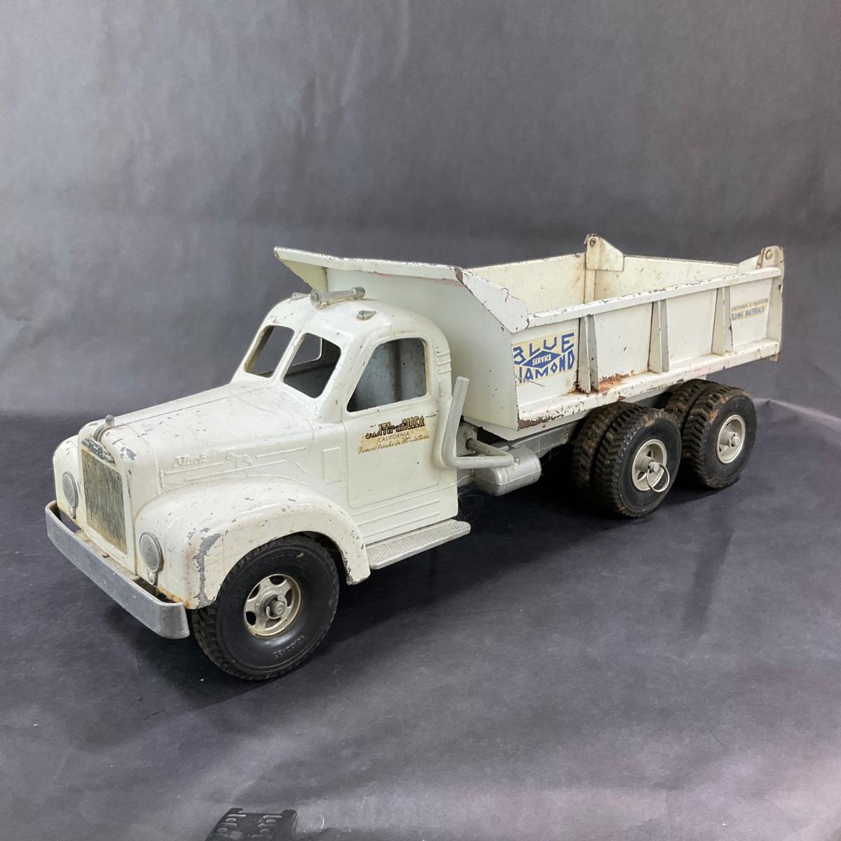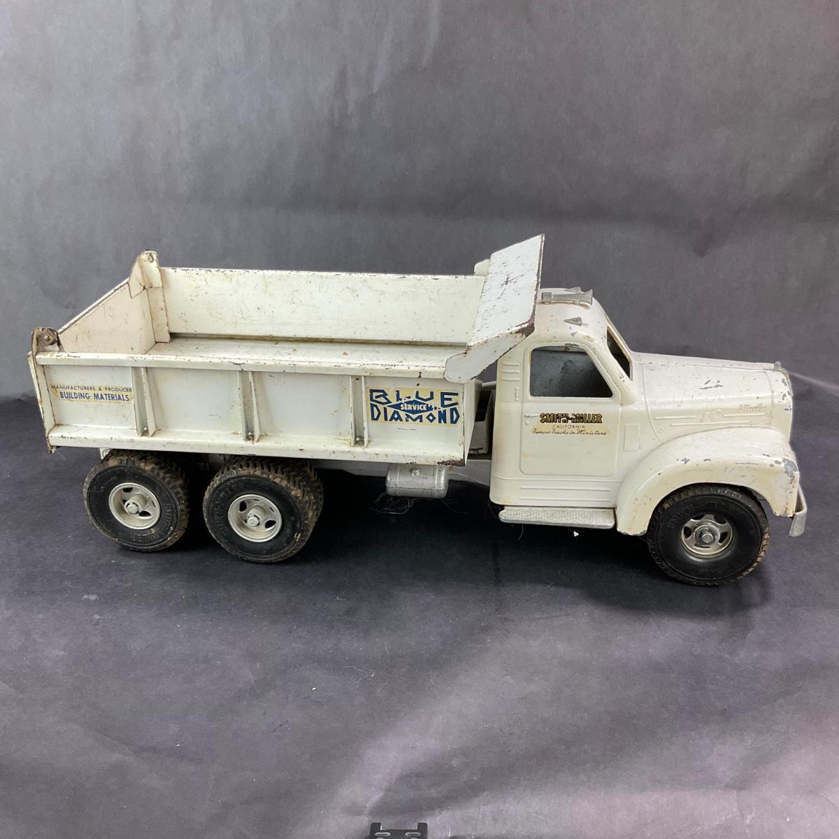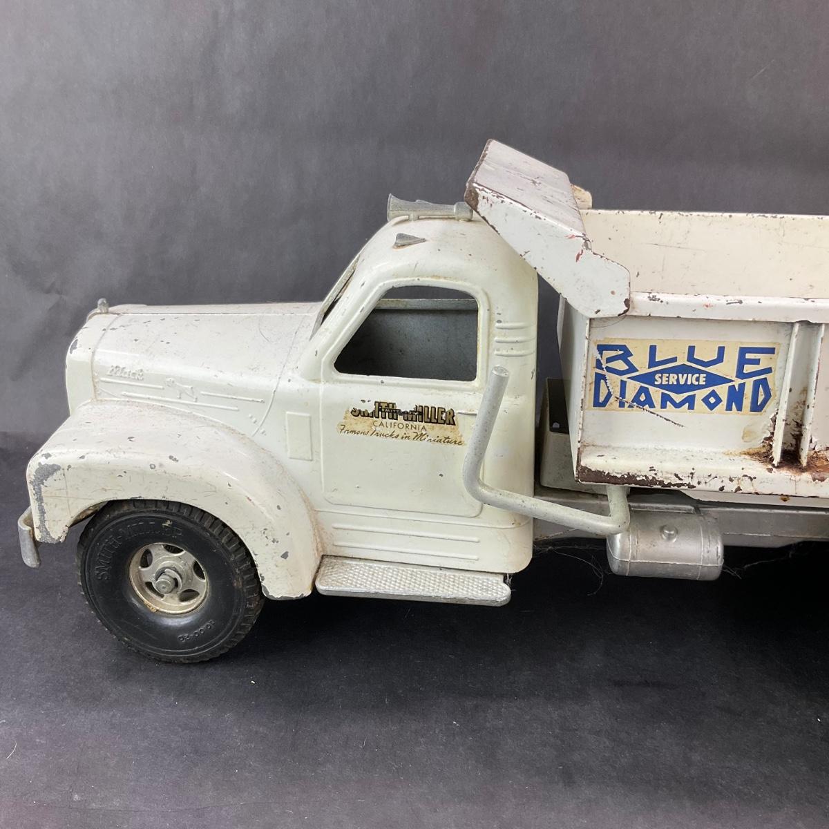 A very attractive Smith-Miller Mack Dump Truck. With the Blue Diamond Service decal on either side of the truck. Truck is in typical condition for its age. Hydraulic works better after the first time, to loosen things up. Holds well. Please see photos for details and condition. **|** ::: Shipping is available on this lot. If you require shipping you must let us know at the close of the auction. We will coordinate with you after the item has been won. Shipping fees will include insurance up to or exceeding the value of all items being mailed. If you have any questions regarding this lot please contact the auctioneer either via this website, by direct email or by phone. PICK UP TIMES and other important information can be found in the TERMS and DESCRIPTION of the auction. Please take a look for pertinent information. Thanks!