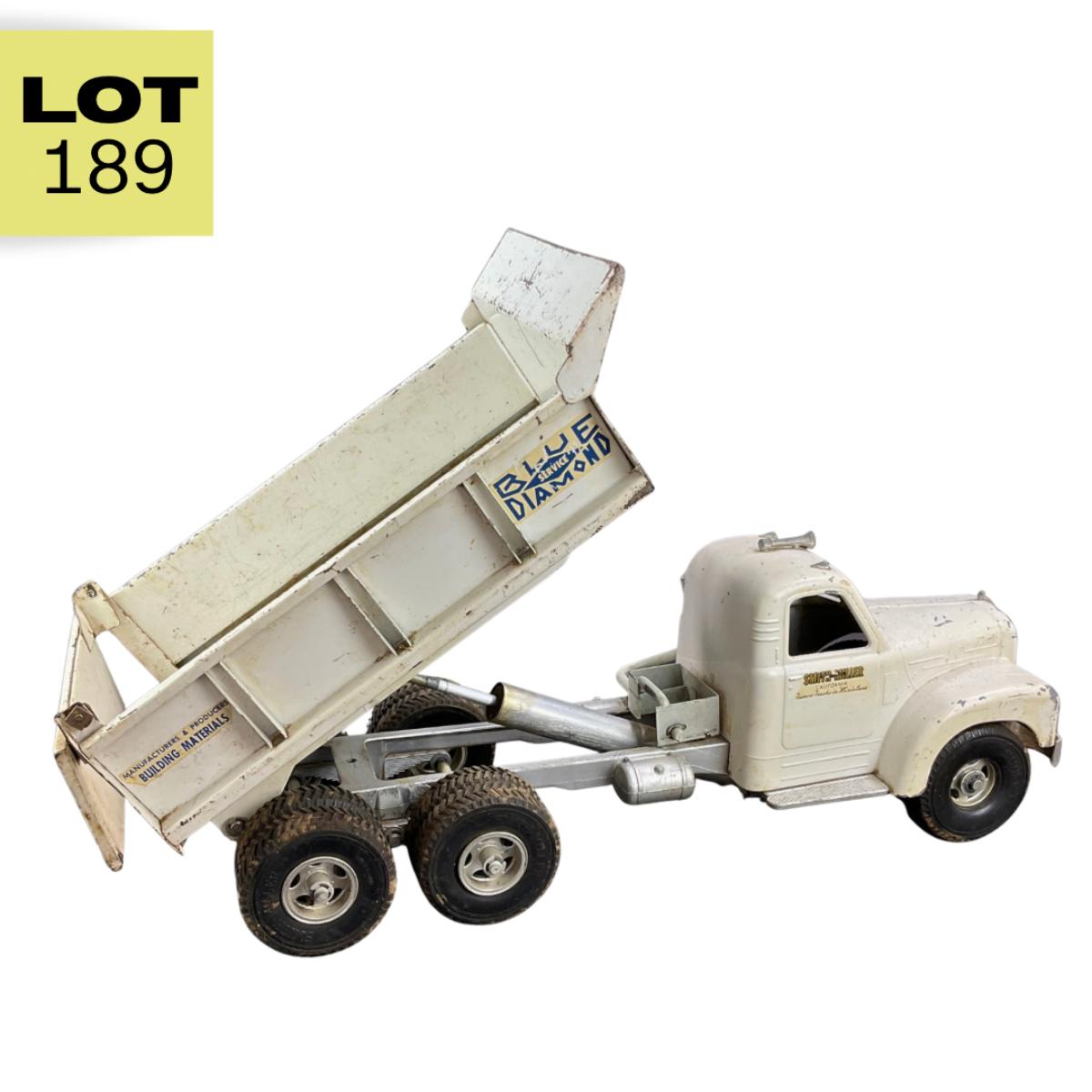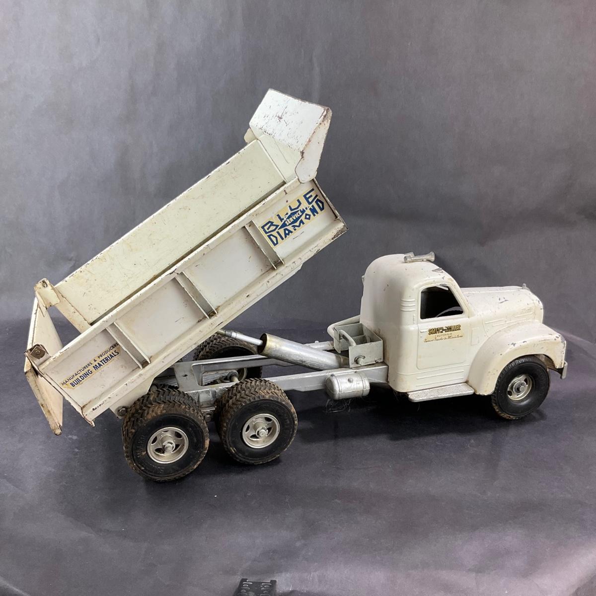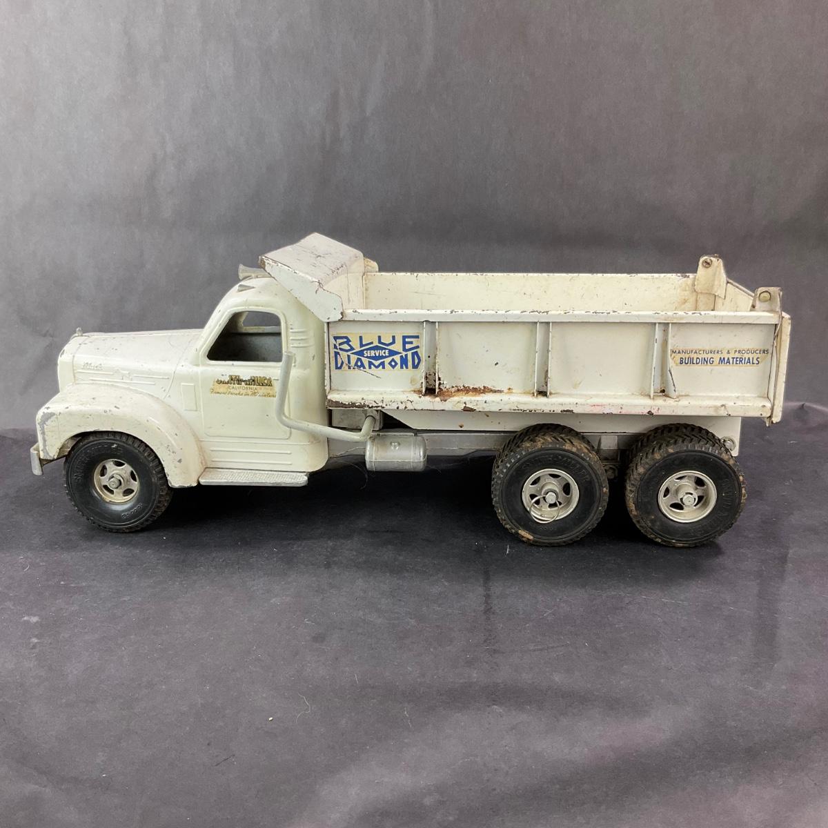 A very attractive Smith-Miller Mack Dump Truck. With the Blue Diamond Service decal on either side of the truck. Truck is in typical condition for its age. Hydraulic works better after the first time, to loosen things up. Holds well. Please see photos for details and condition. **|** ::: Shipping is available on this lot. If you require shipping you must let us know at the close of the auction. We will coordinate with you after the item has been won. Shipping fees will include insurance up to or exceeding the value of all items being mailed. If you have any questions regarding this lot please contact the auctioneer either via this website, by direct email or by phone. PICK UP TIMES and other important information can be found in the TERMS and DESCRIPTION of the auction. Please take a look for pertinent information. Thanks!