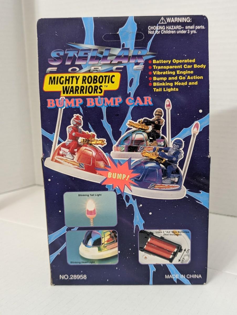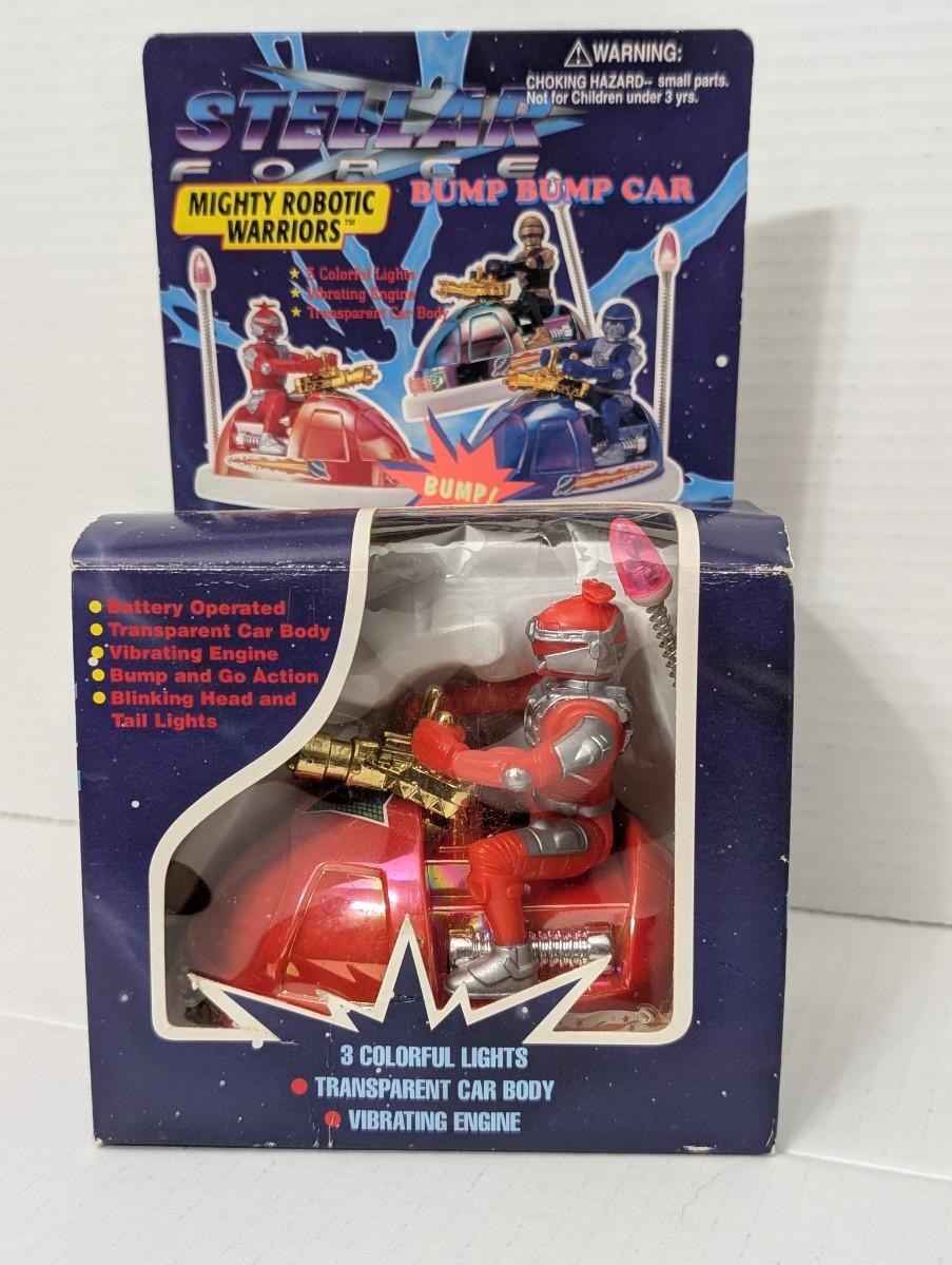 Stellar Force toy, Bump Bump Car, Mighty Robotic Warriors, vintage space toy, retro battery toy, 1990s bump go action, robotic warrior figure, blinking lights toy, boxed vintage toy, collectible robot car