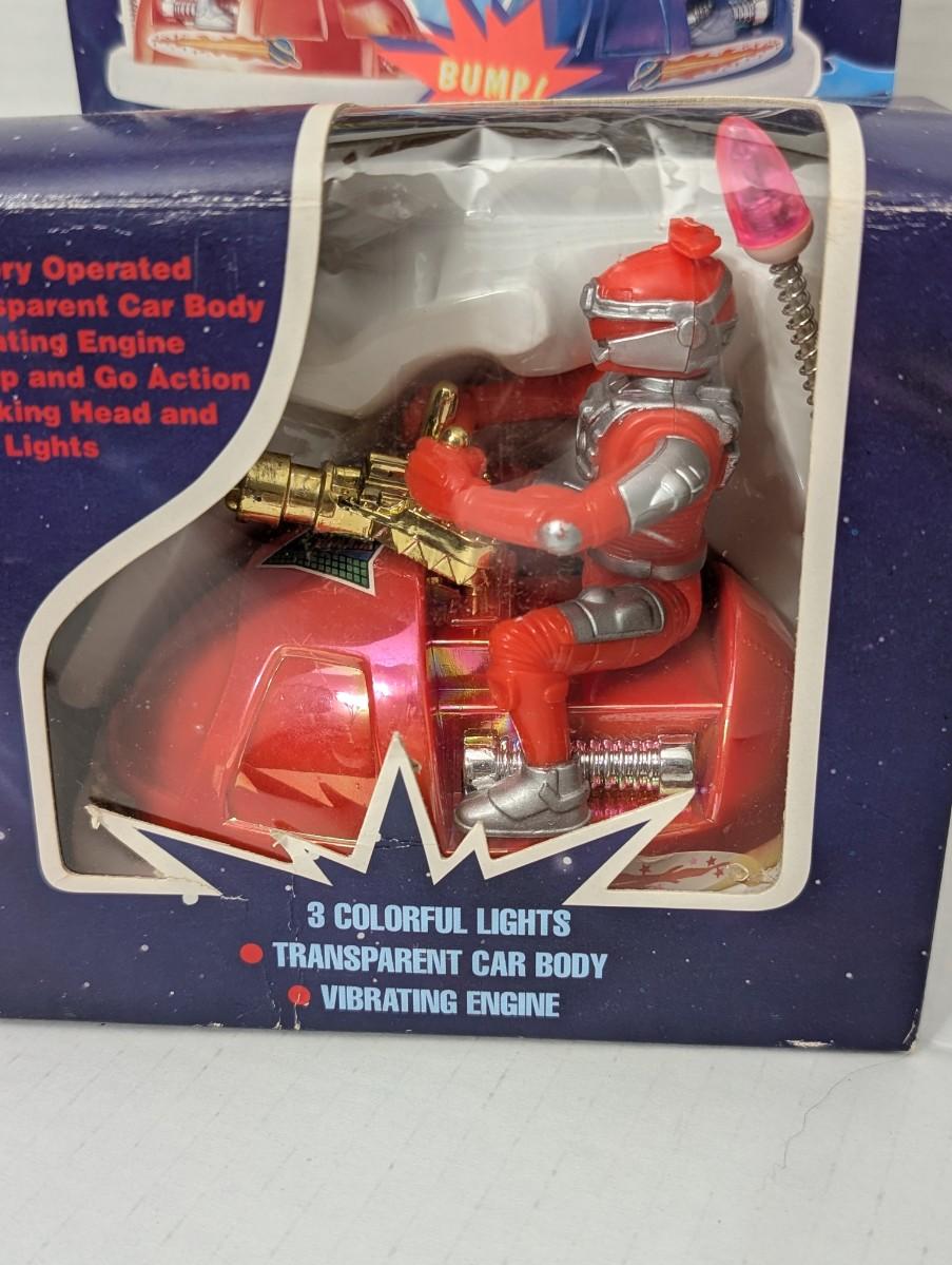 A fun retro collectible for fans of 1990s space toys, robotic warriors, or vintage battery-operated bump-and-go vehicles. Great display piece or addition to a nostalgic toy collection.