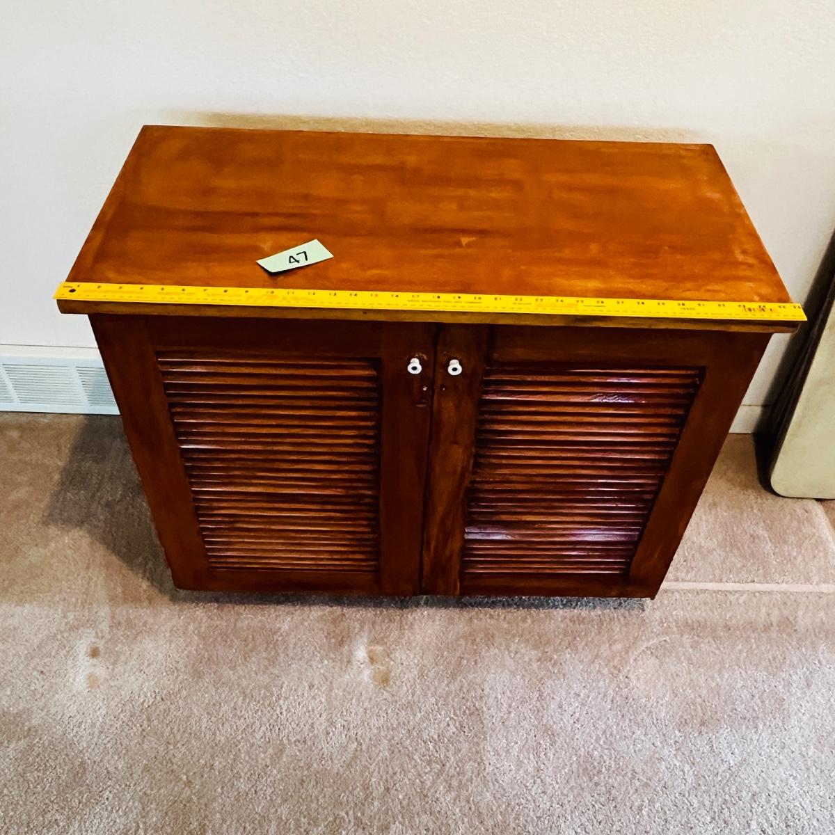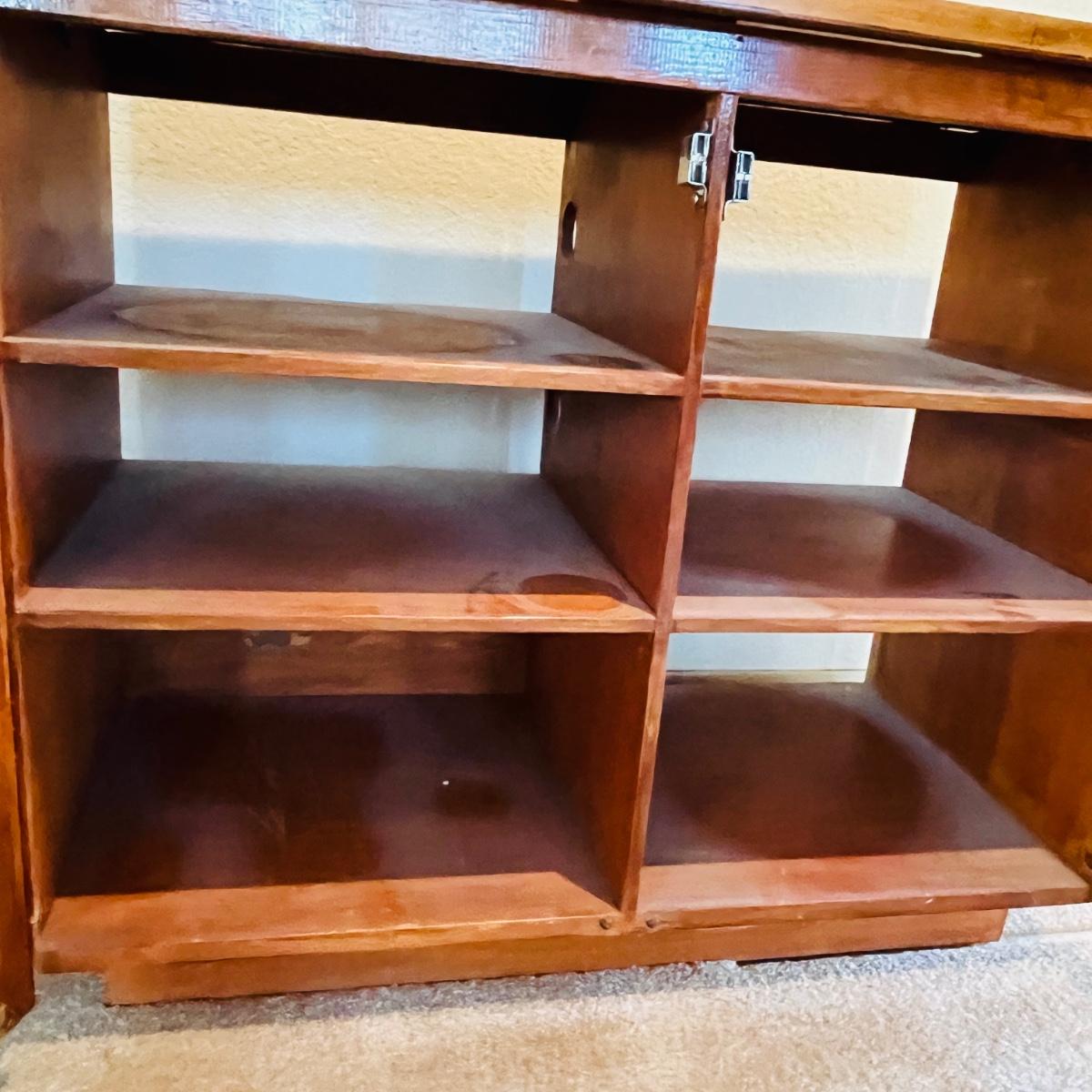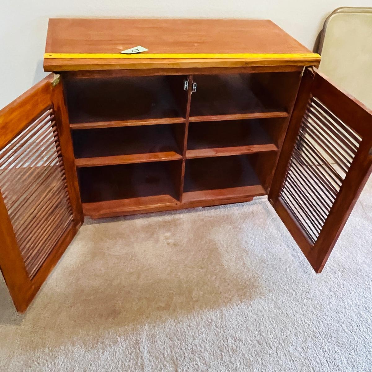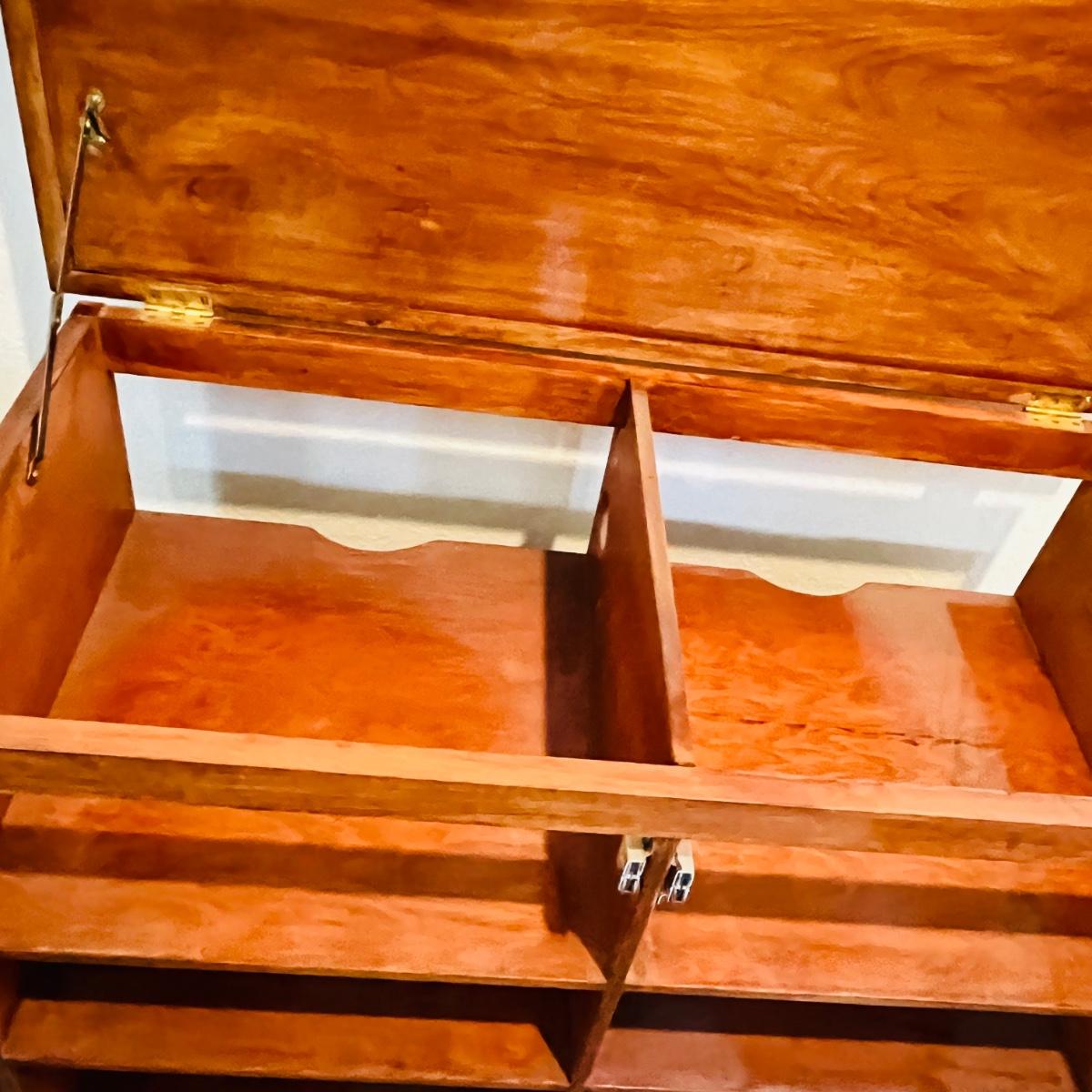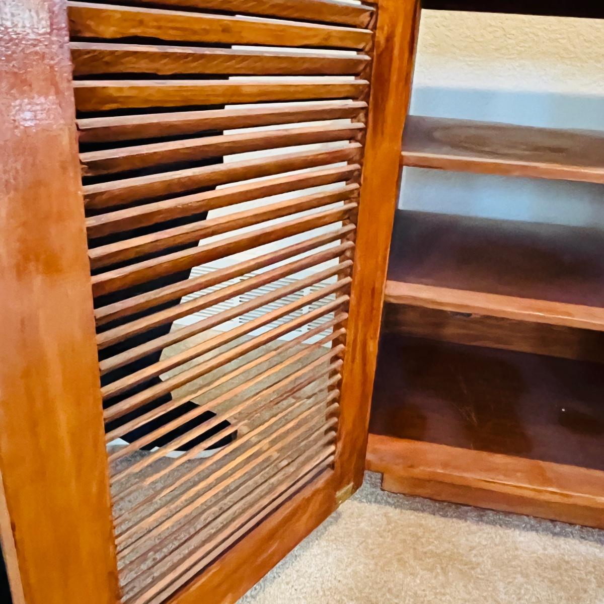 This makes for a great bar, but it started life out as a stereo cabinet. The top lifts!