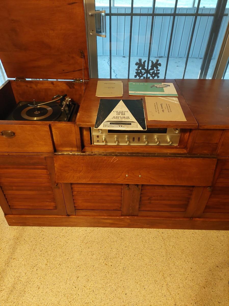 A very nice vintage stereo cabinet. the electronics are included but are not working