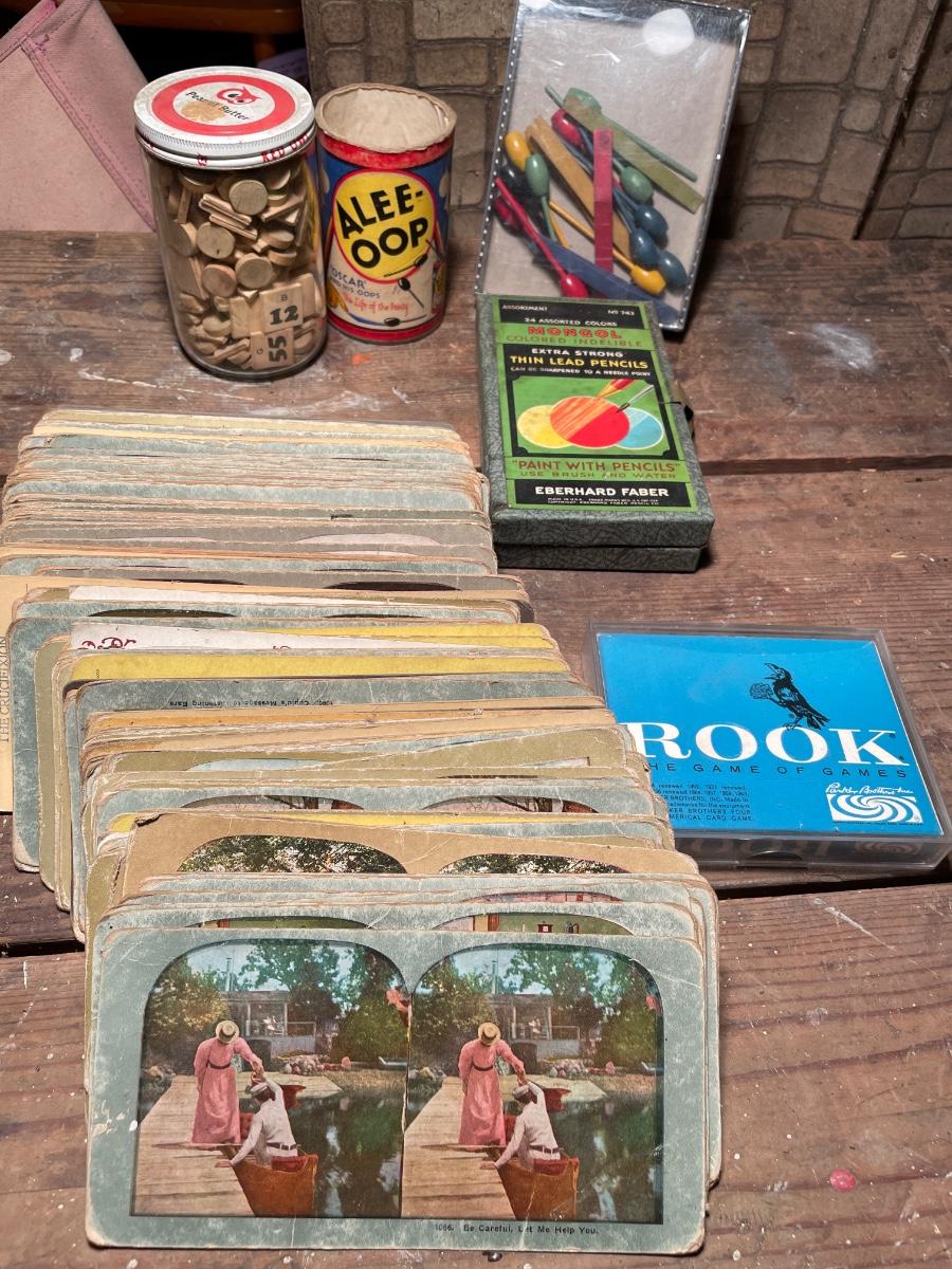 Vintage stereoscope cards and games