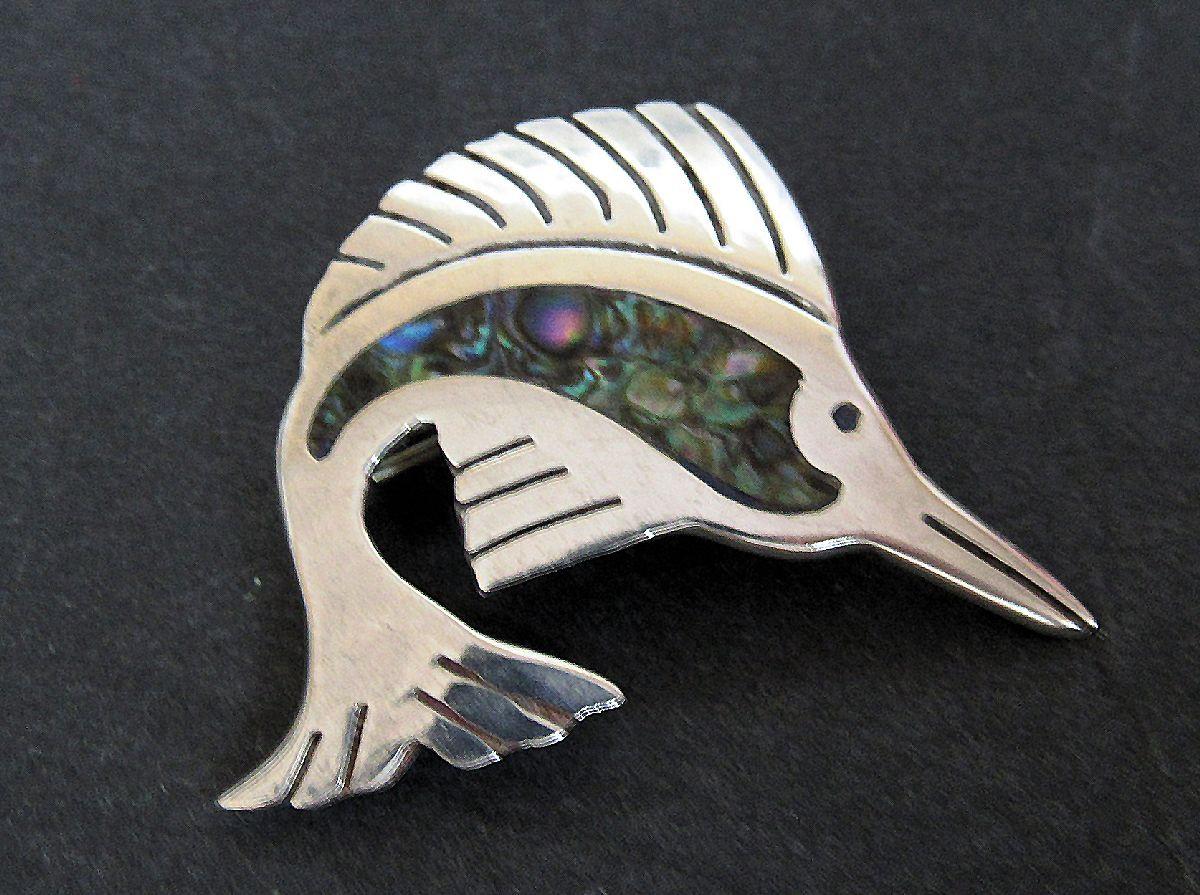 Vintage Sterling and Abalone Shell Sailfish Pin, Mexico
