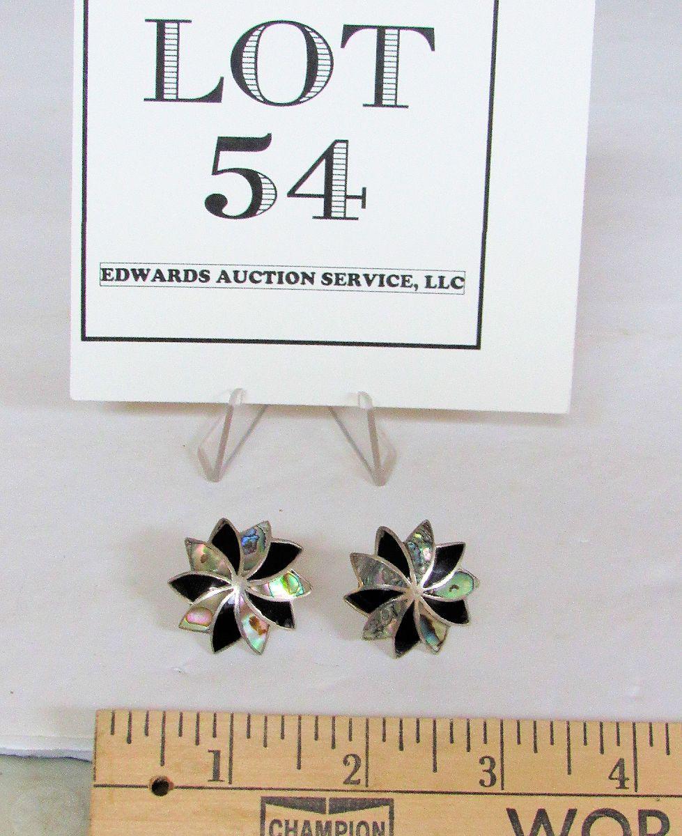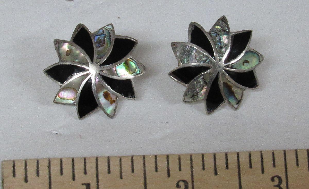 Vintage Sterling and Abalone Floral Earrings, Mexico