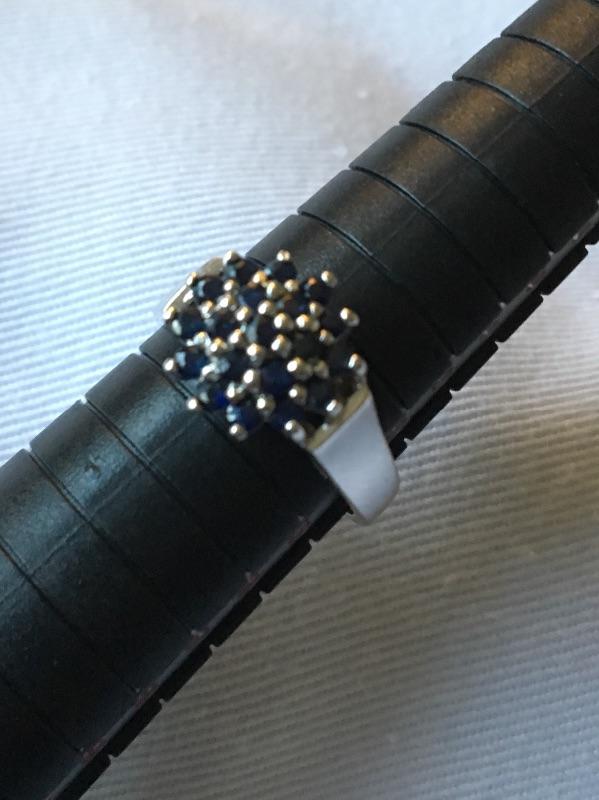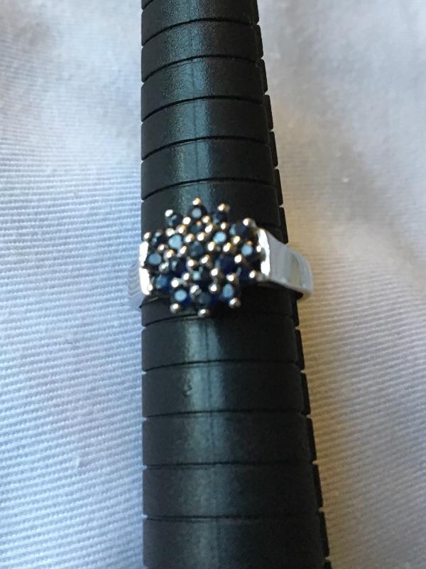 Vintage Sterling and Sapphire Style Cluster Ring. Size 7