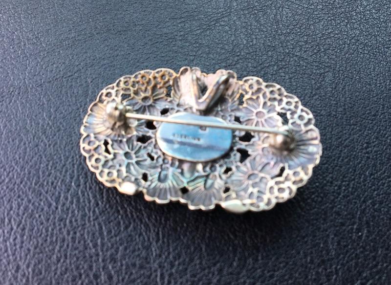 Measures 1.5”w x 1”h. Packaging and shipping services available. Please contact us for a quote before bidding.