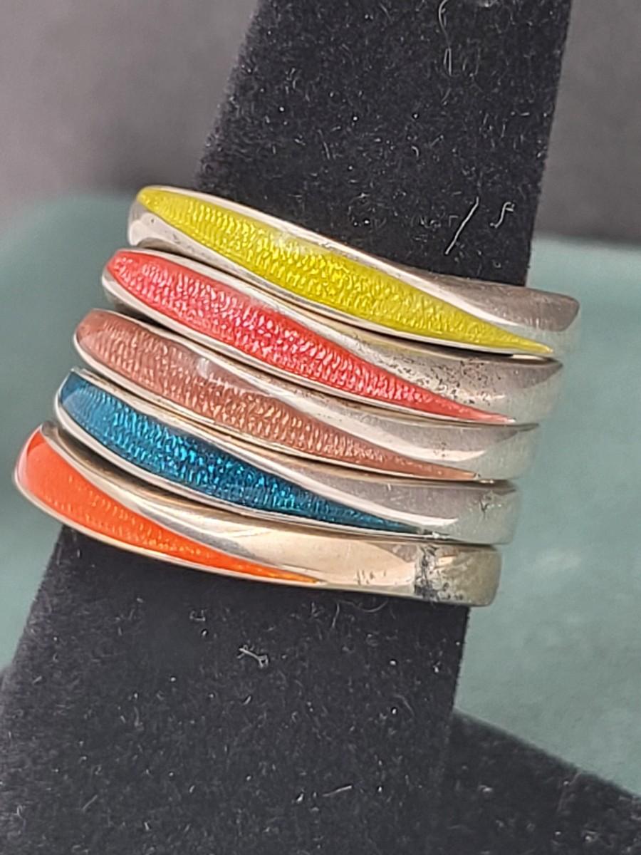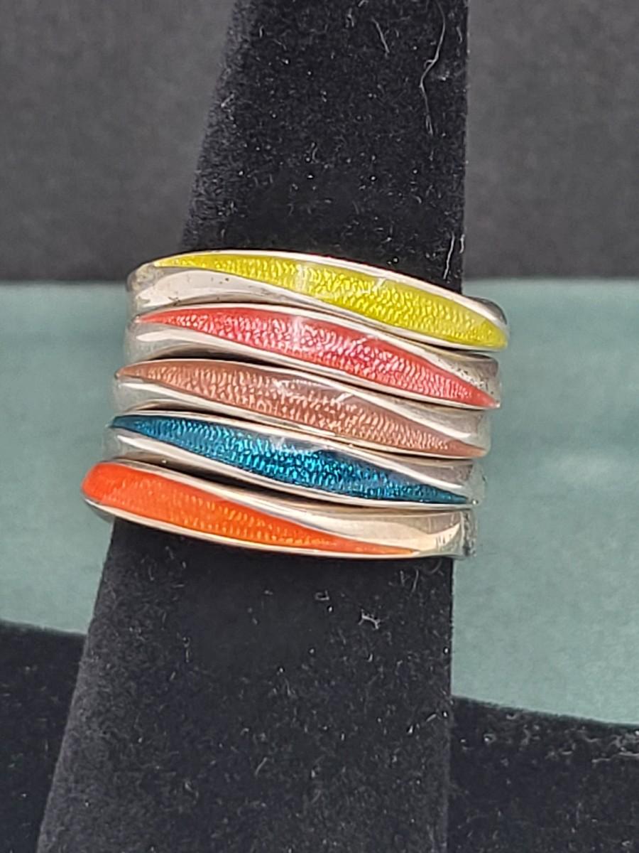 Vintage Sterling & Enameled Stacking Rings 13.8gr