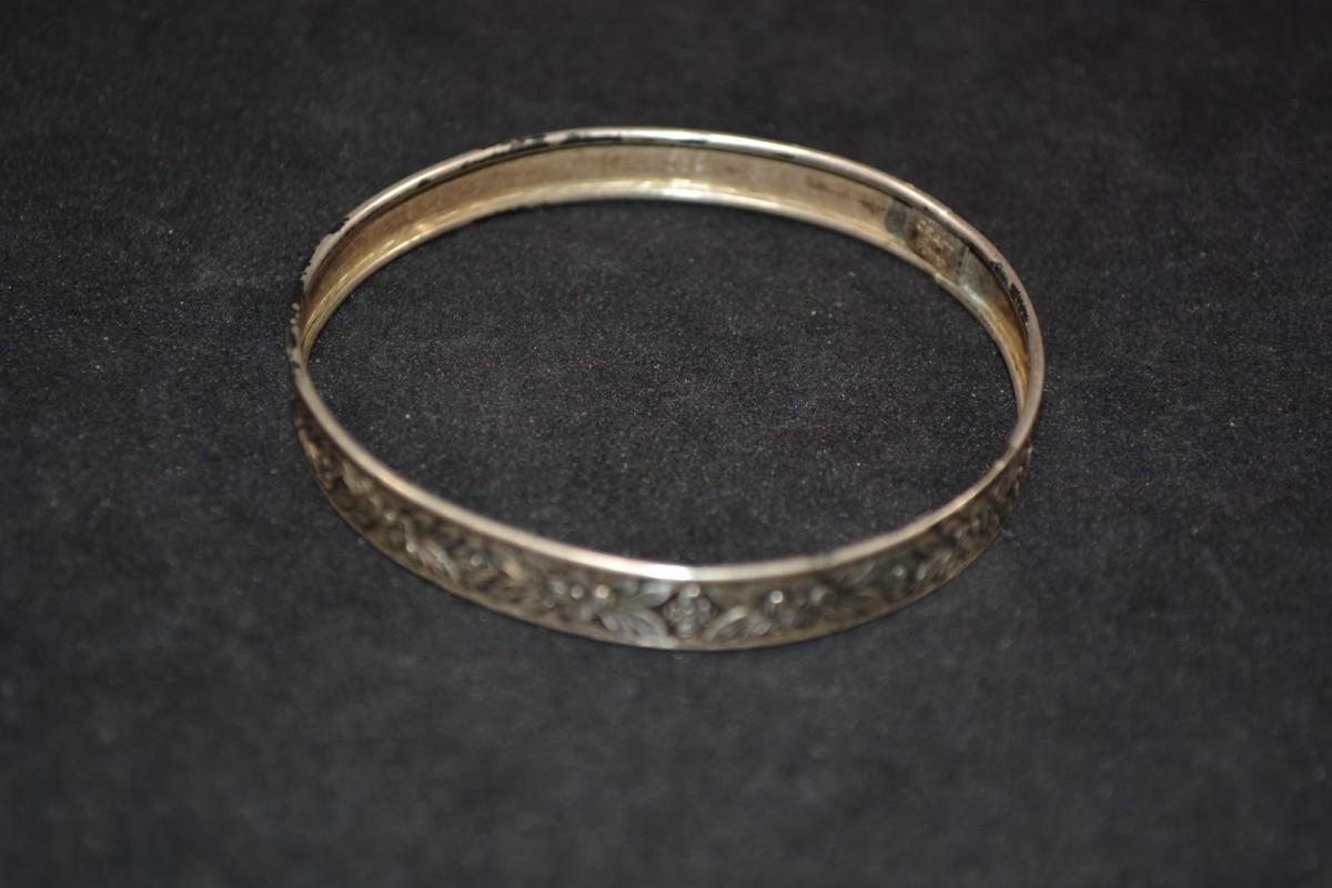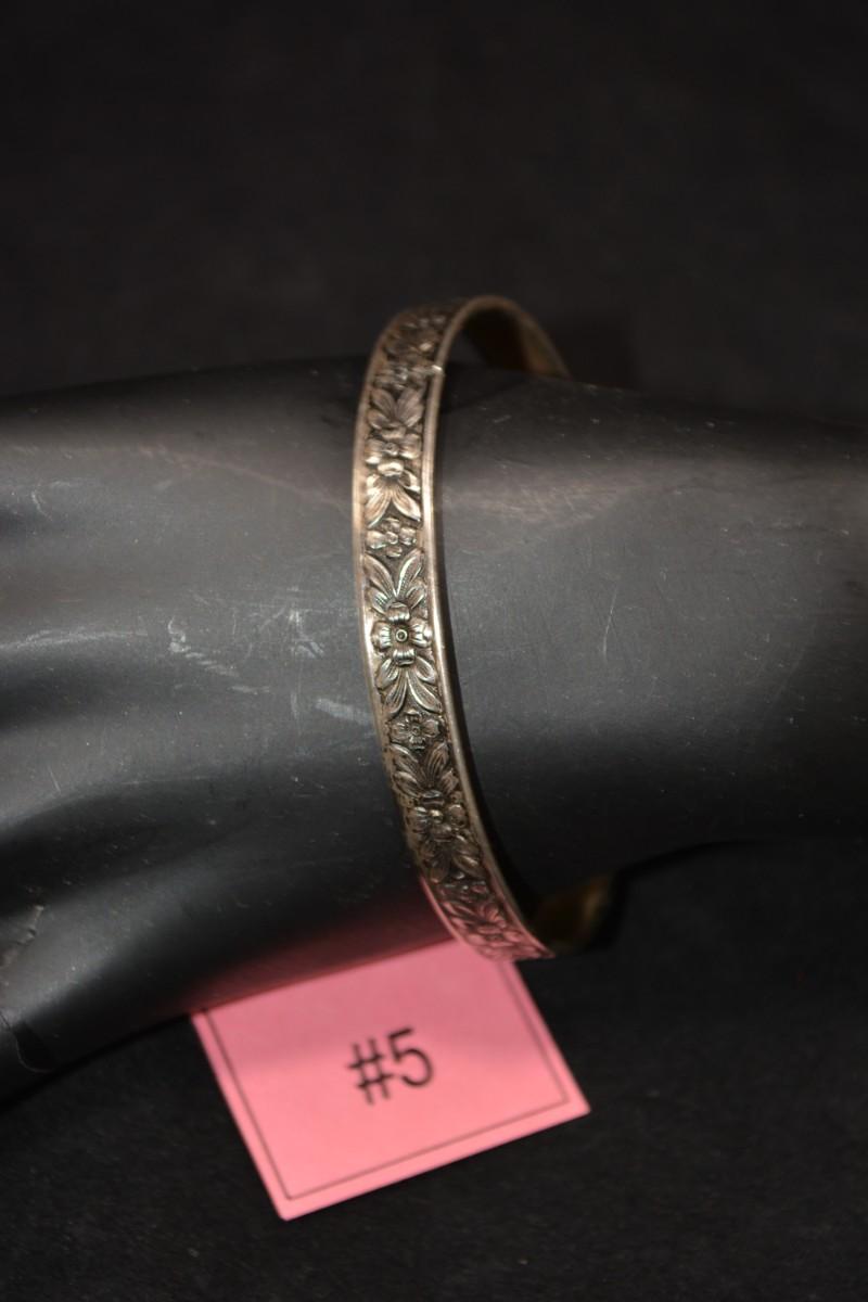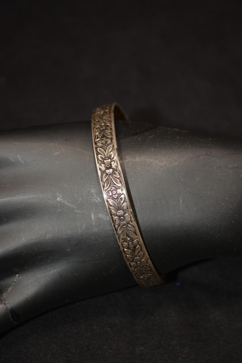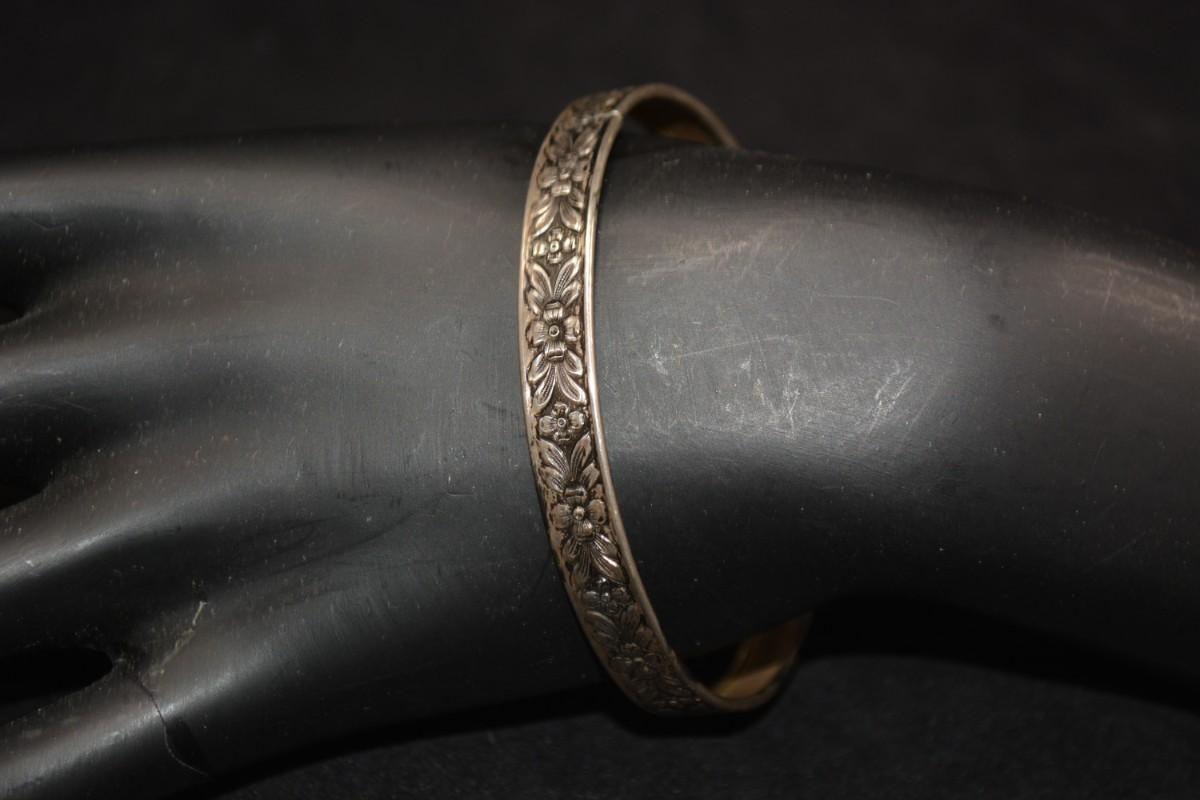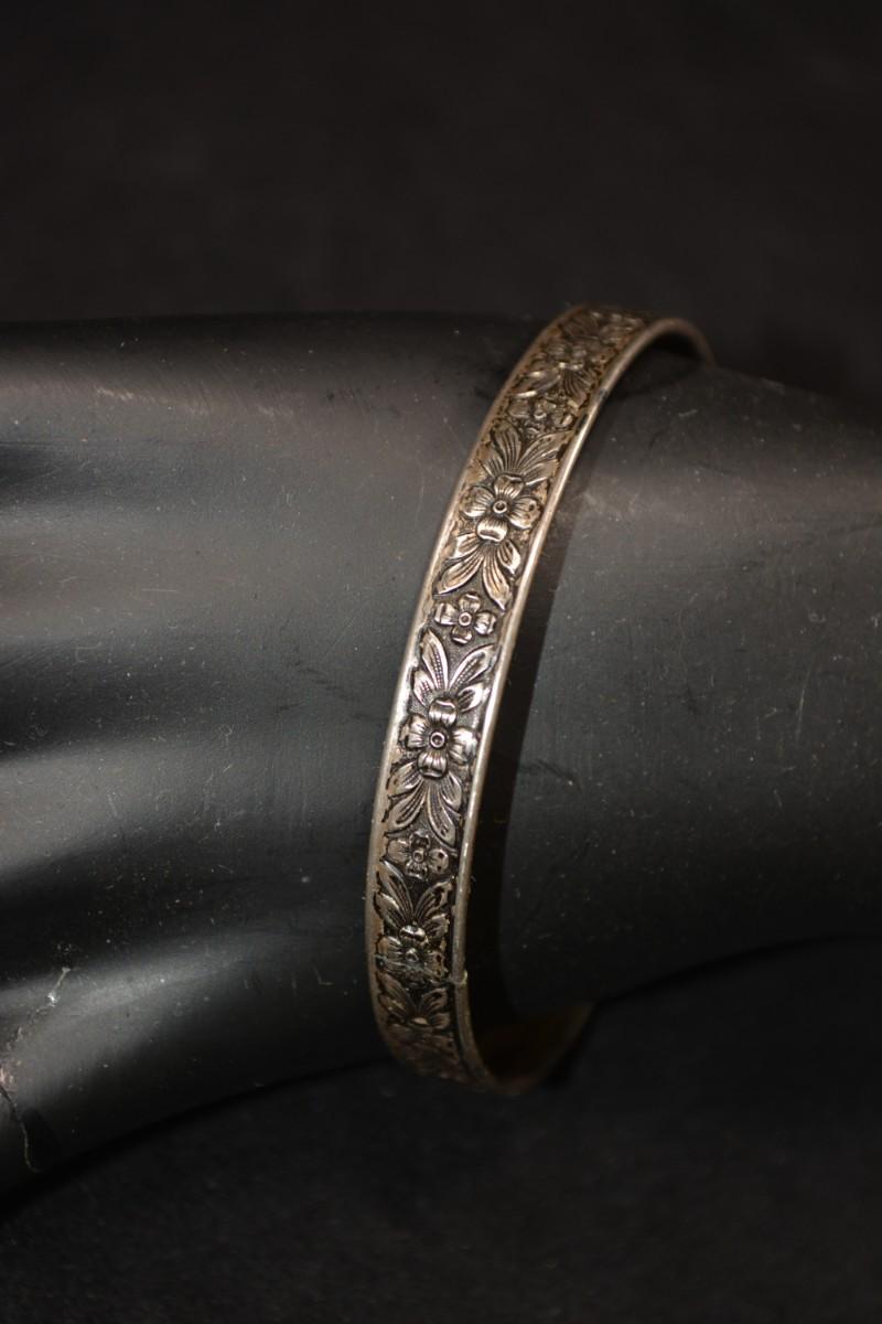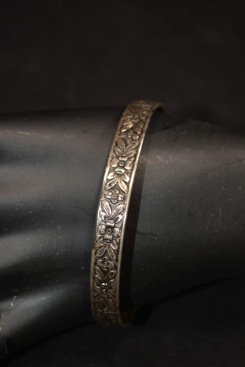 Vintage Sterling Floral Bangle Bracelet 6.5g