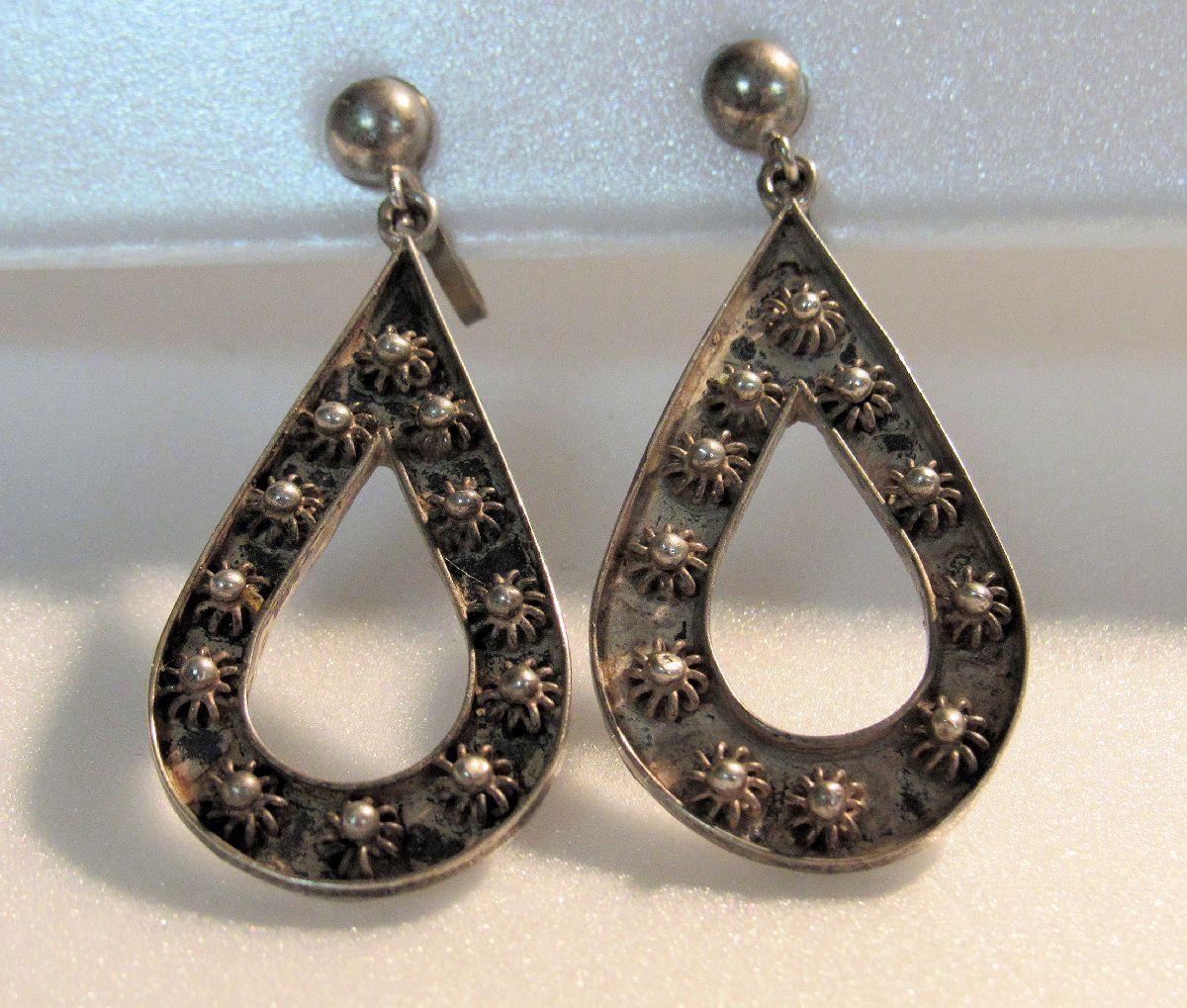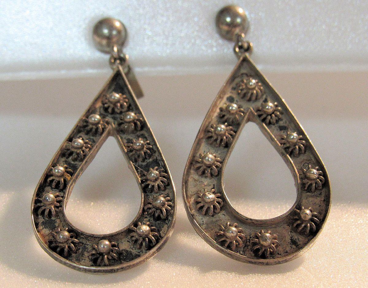 Vintage Sterling Hand Made Earrings, Mexican 925