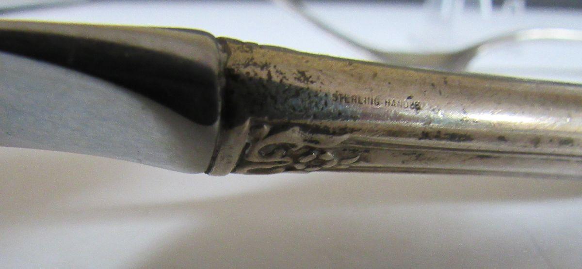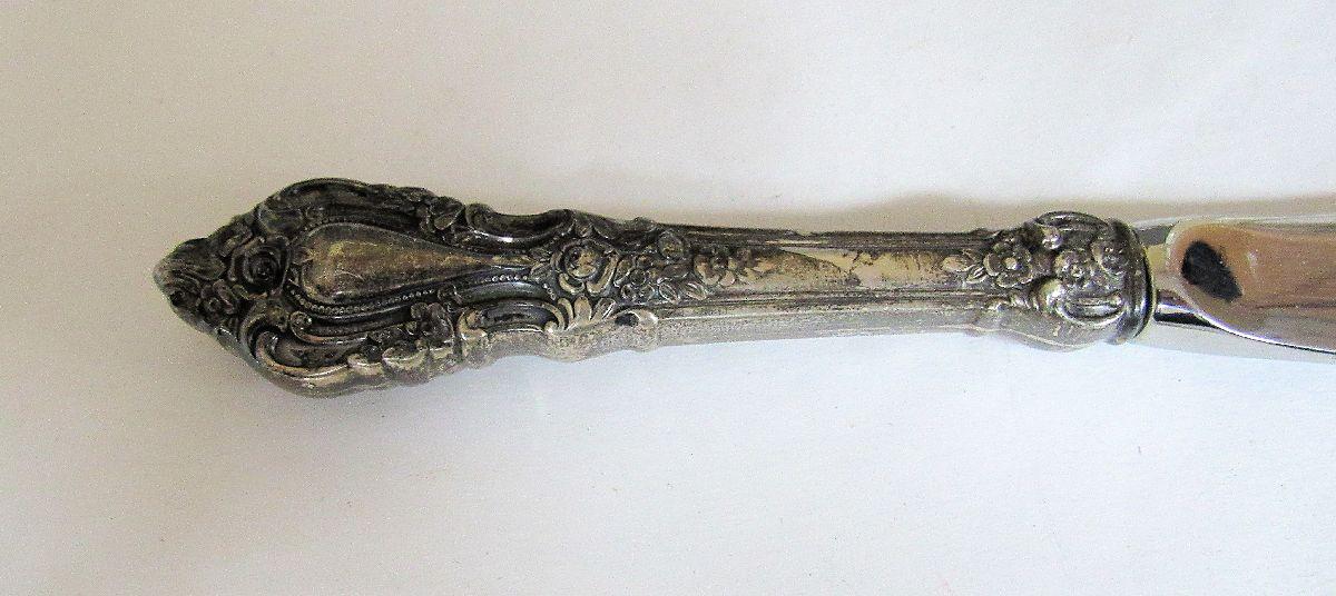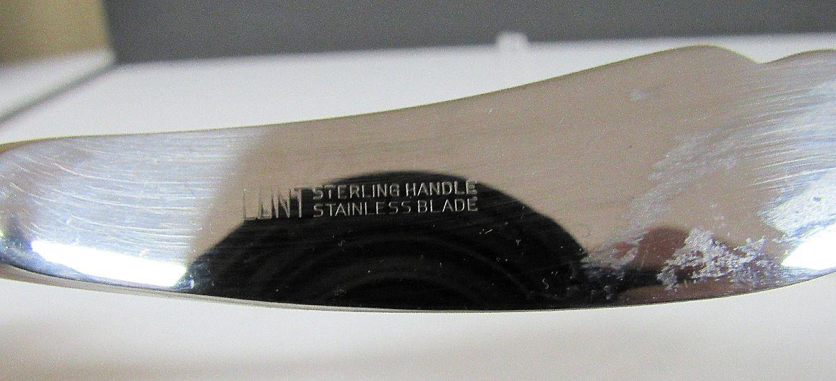 The Lunt Eloquence pattern is highly collectible. Tarnished and needs cleaning and polishing. Marked as seen in photos. Shipping is available at shipping cost plus $5.00 handling fee on one box, $10.00 handling fee on two boxes, $15.00 handling fee on 3 boxes. Helps cover shipping materials and labor cost.