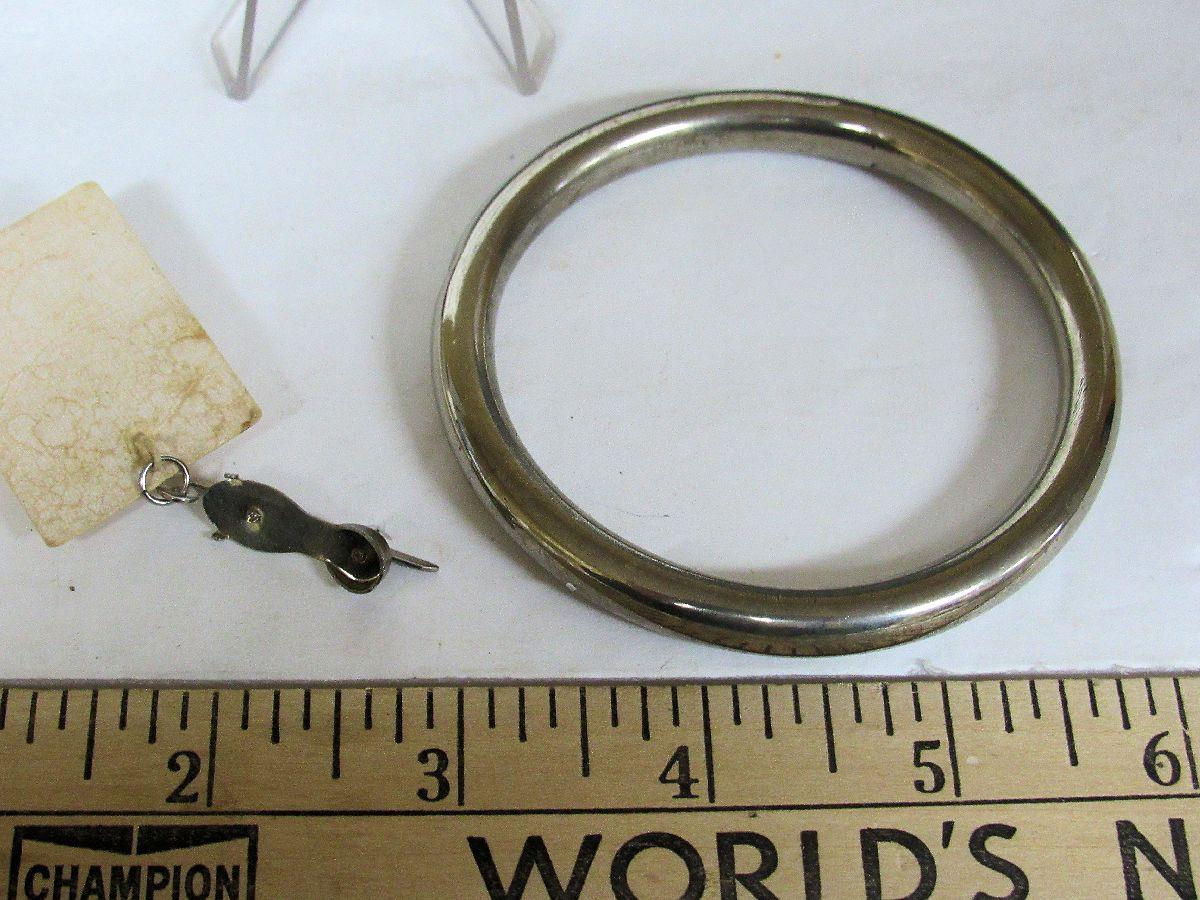 Vintage Sterling Ice Skate Charm and Silver Bangle, Read Description