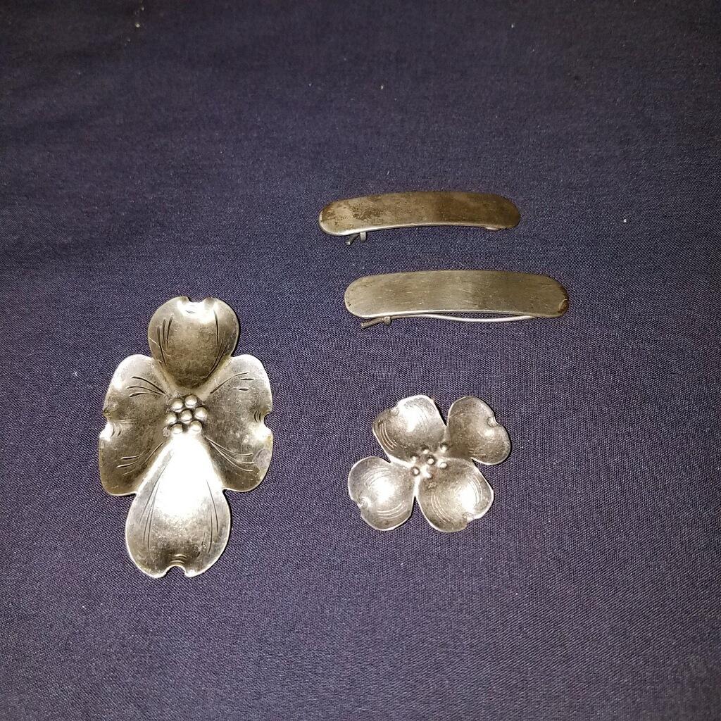 2 pins, 1 pr. barrettes