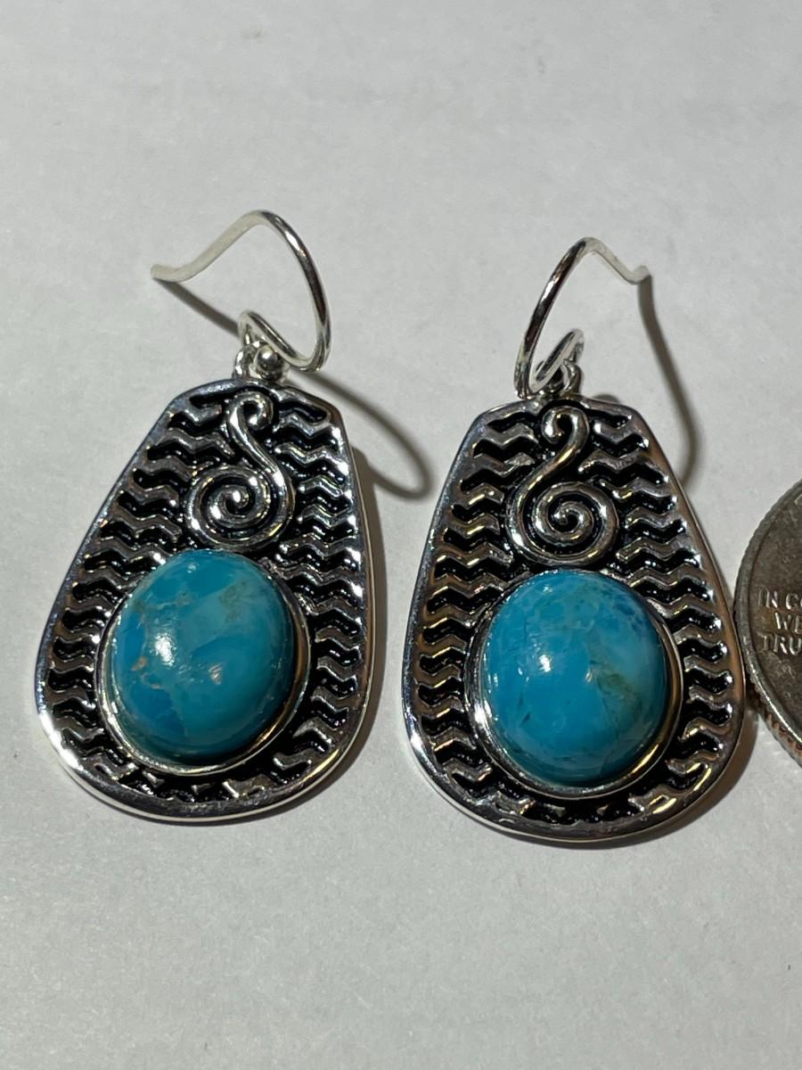 Vintage Sterling Silver .925 BBJ Turquoise Dangling Earrings in New Never Worn Condition.
