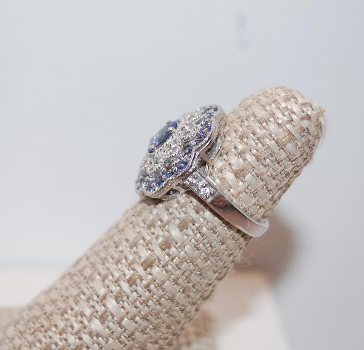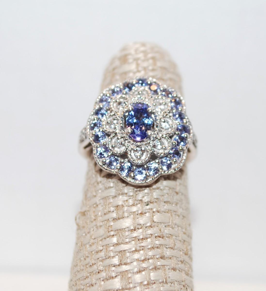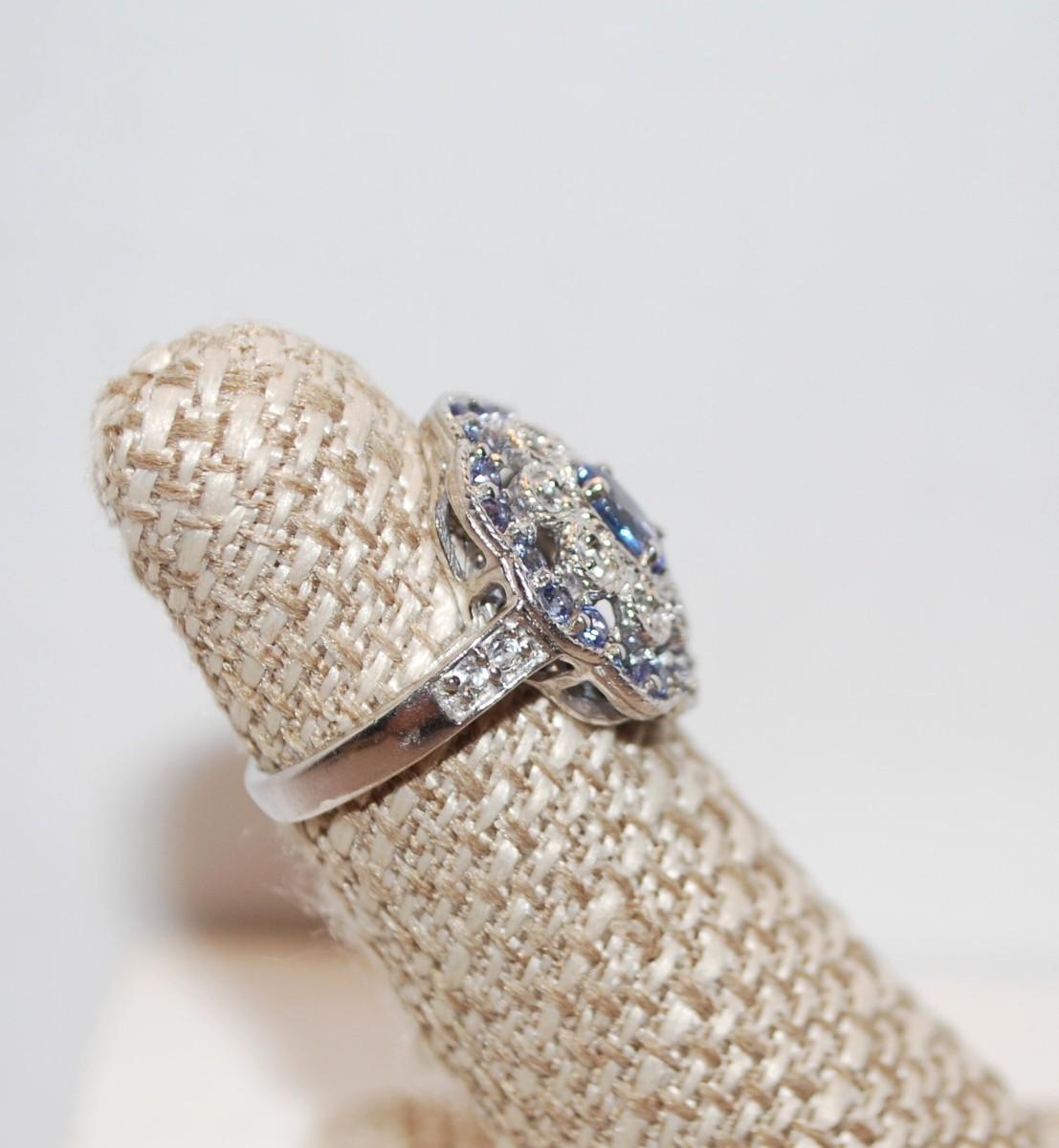 Vintage STERLING SILVER .925 Blue/Purple Center Gemstone with Stone Surrounds (4.6g) Size 5 1/2