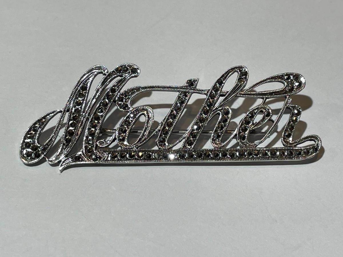 Vintage Sterling Silver .925 Marcasite "Mother" Pin in VG Preowned Condition.