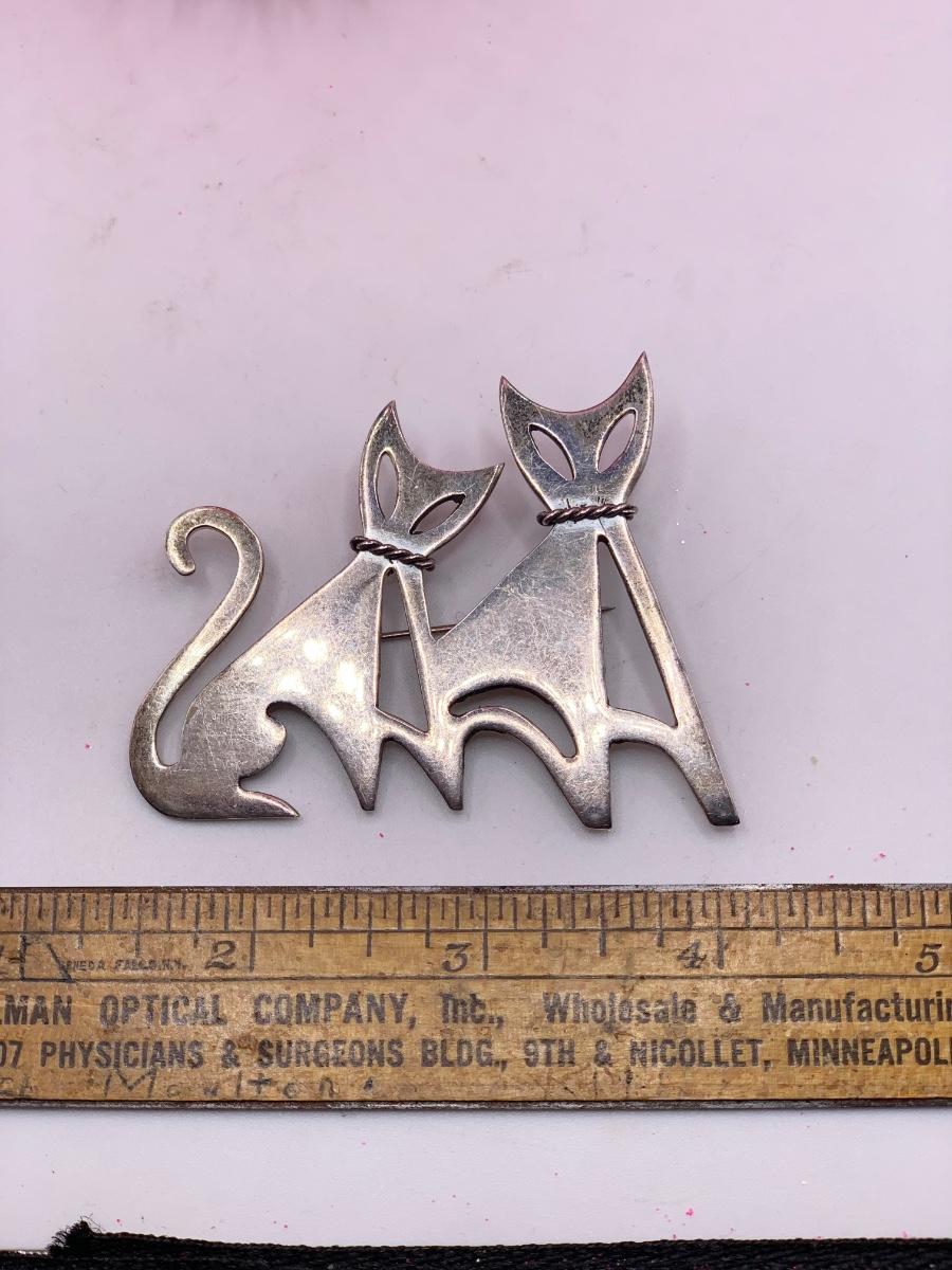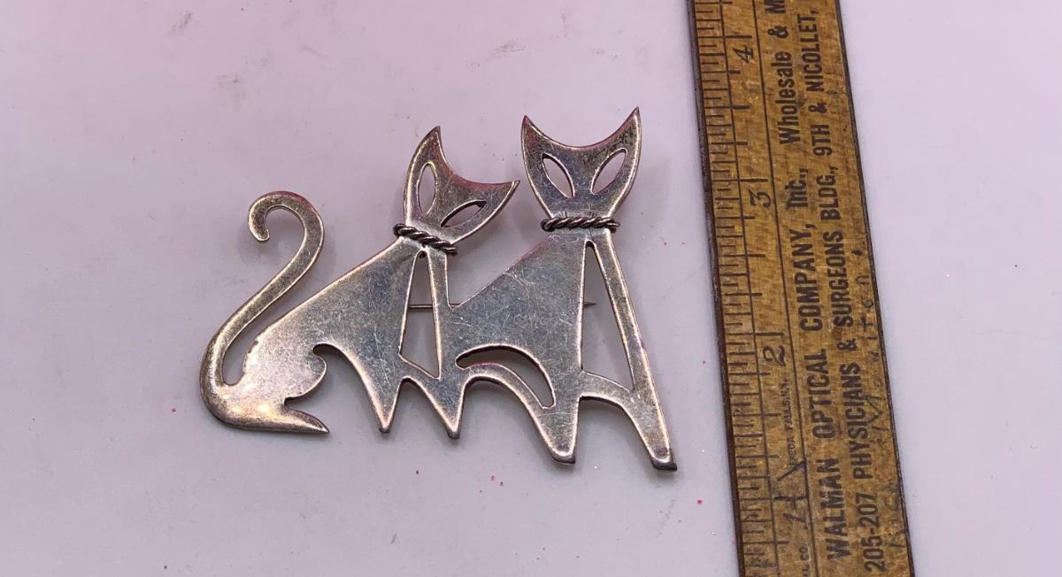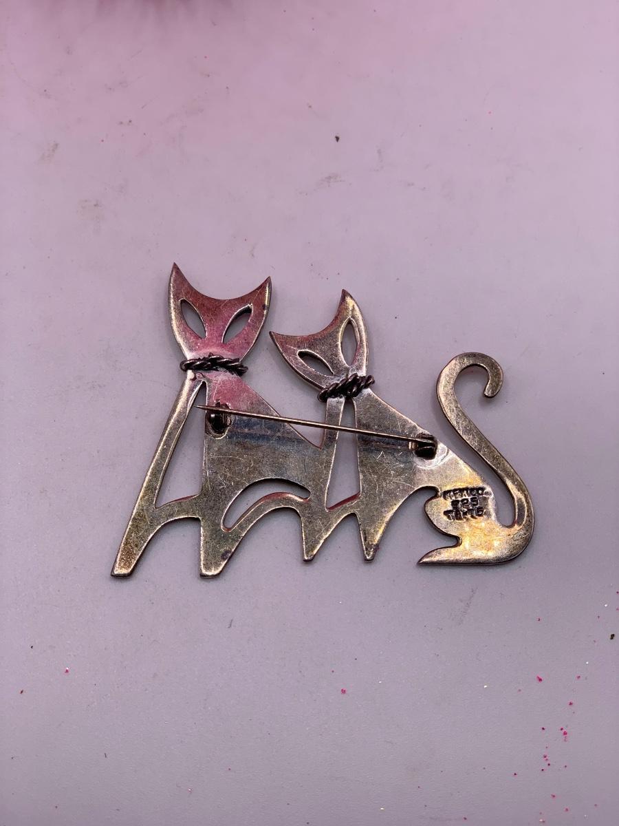 Vintage Sterling Silver 925 TAXCO Mexico Two Cats Brooch/Pin