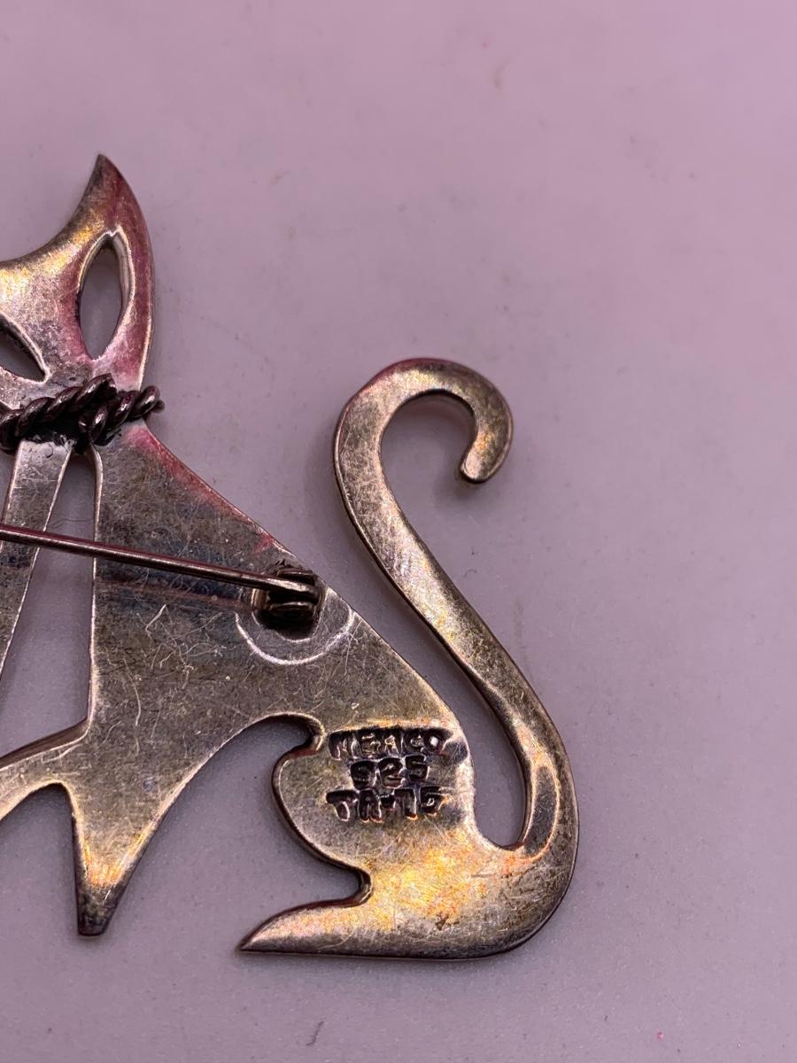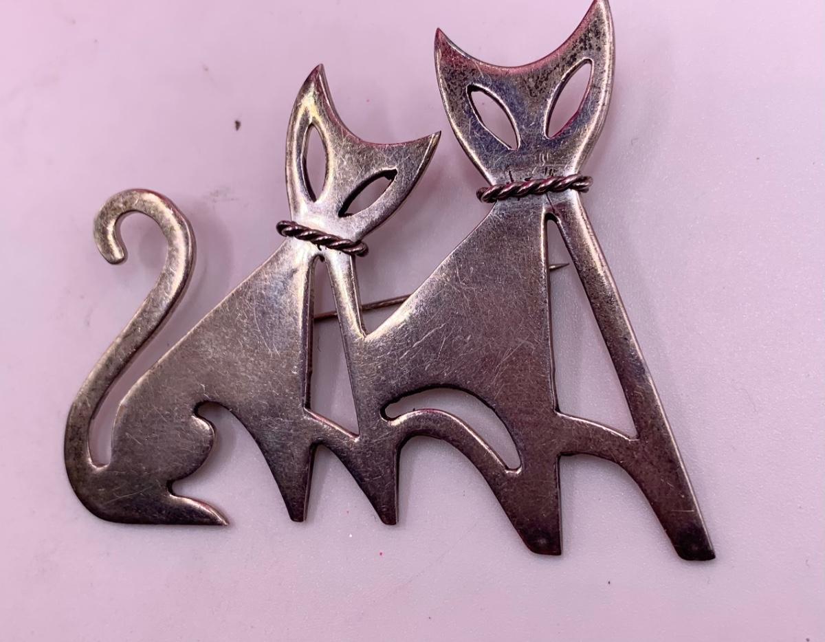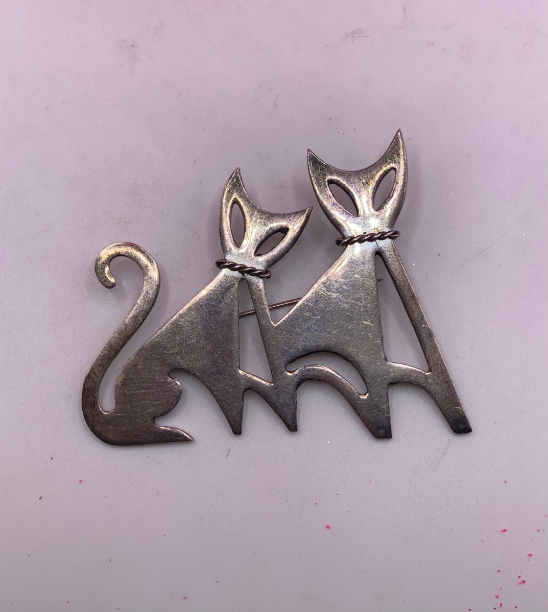 Vintage Sterling Silver 925 TAXCO Mexico Two Cats Brooch/Pin