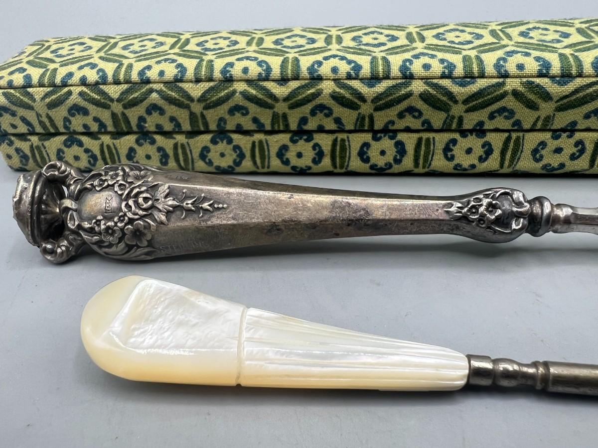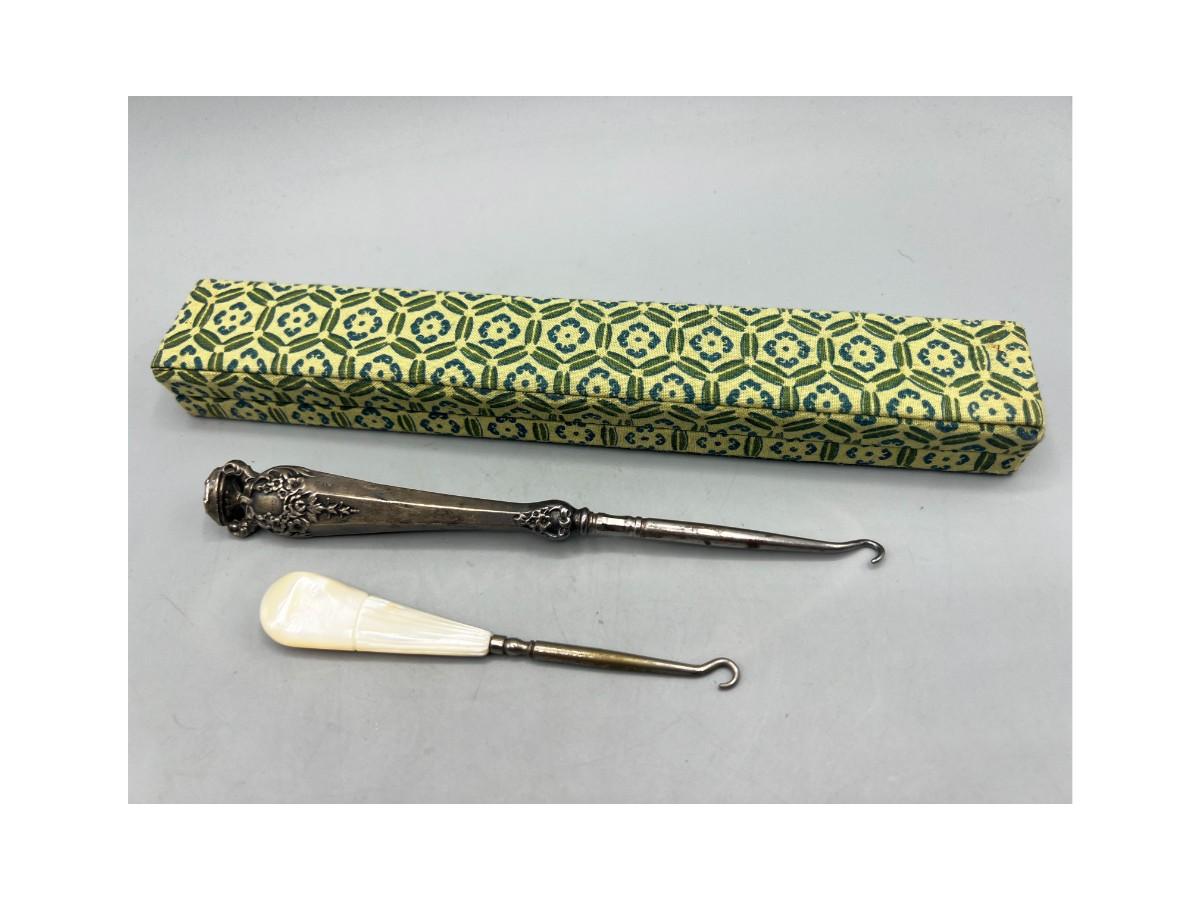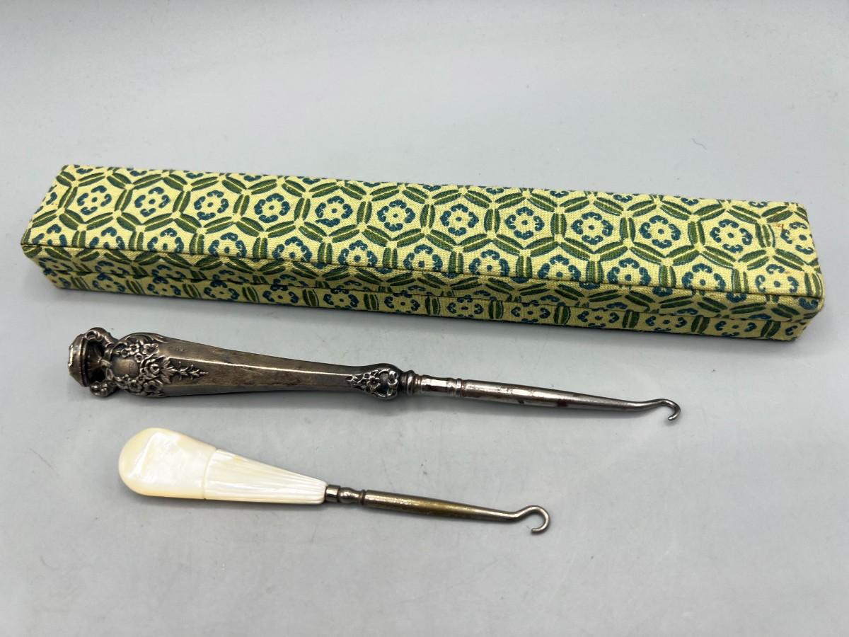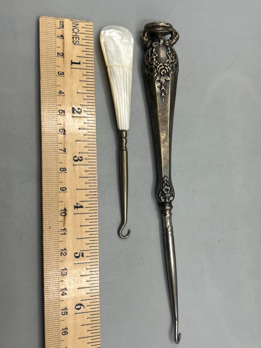 Vintage Sterling Silver & Albany Handled Button Hooks