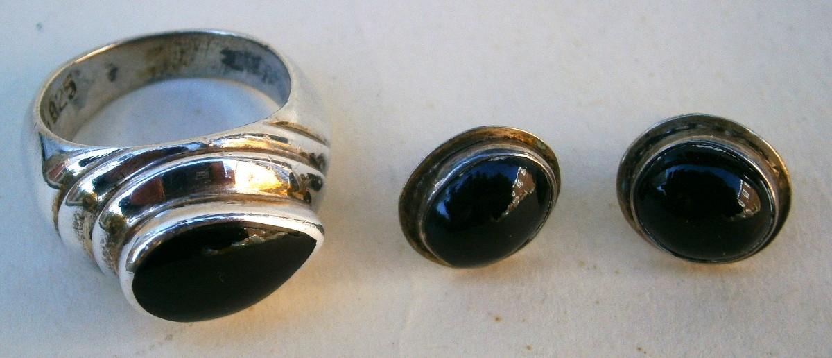 Vintage Sterling Silver and Onyx Ring and Earrings