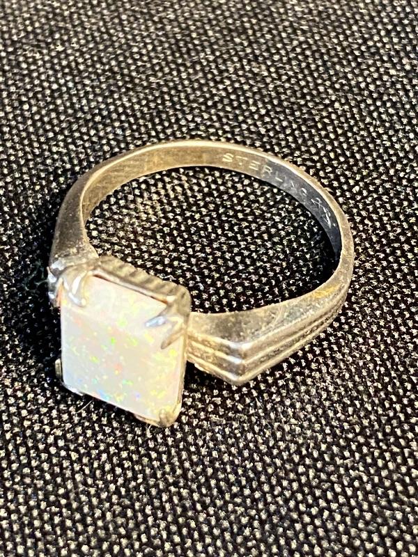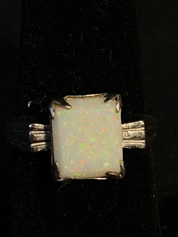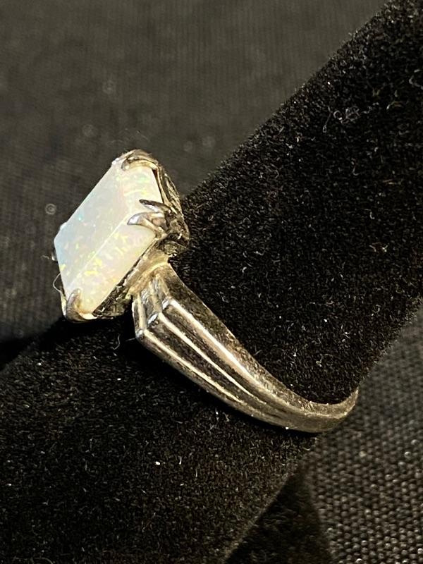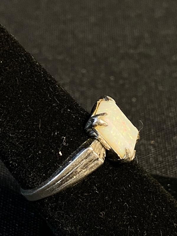 Vintage Sterling Silver and Opal Ring. Unique and rare, square cut Opal. Stamped inside. Size 7