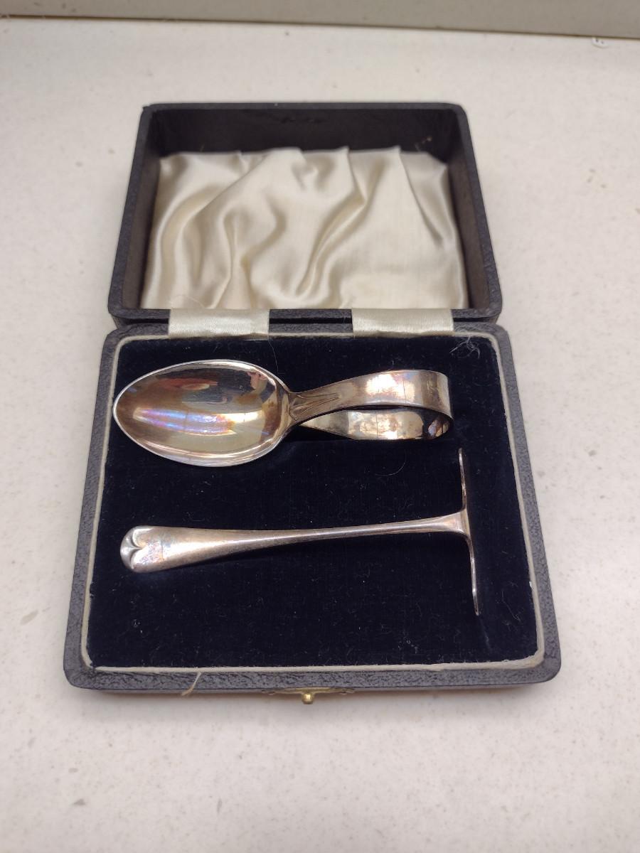 Vintage Sterling Silver Baby Spoon and Pusher- Approx Total Weight 31 Grams
