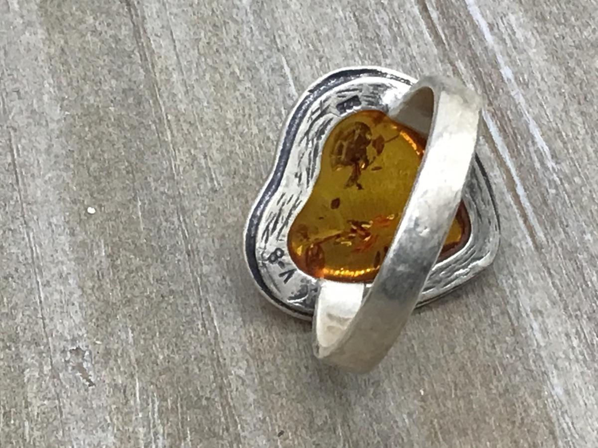 Vintage Sterling Silver Baltic Amber Type Ring