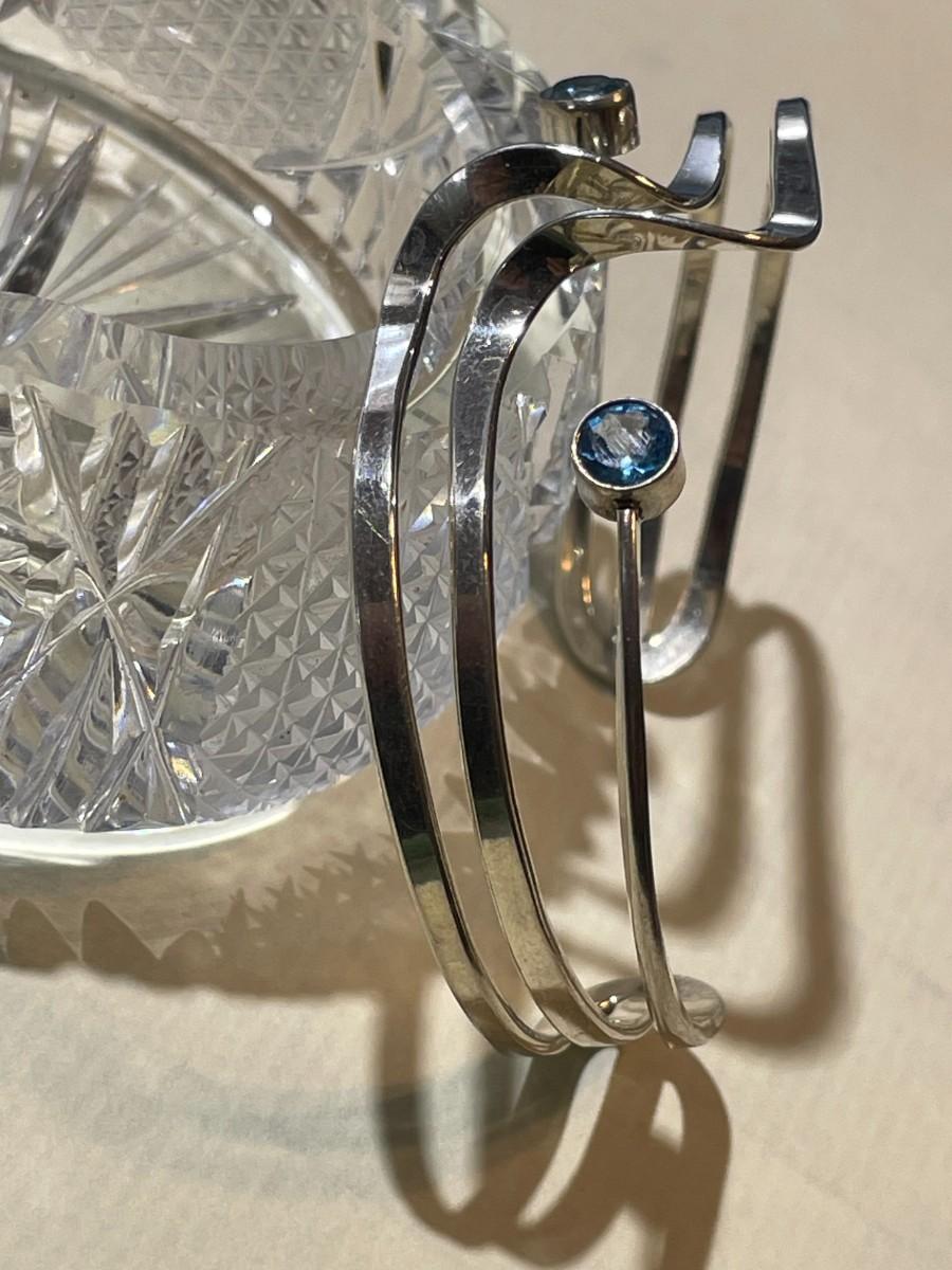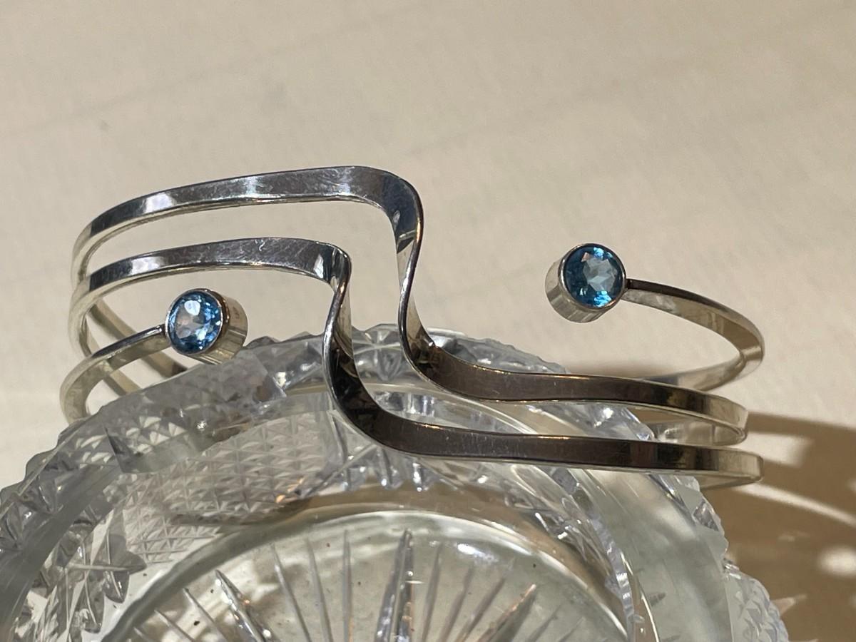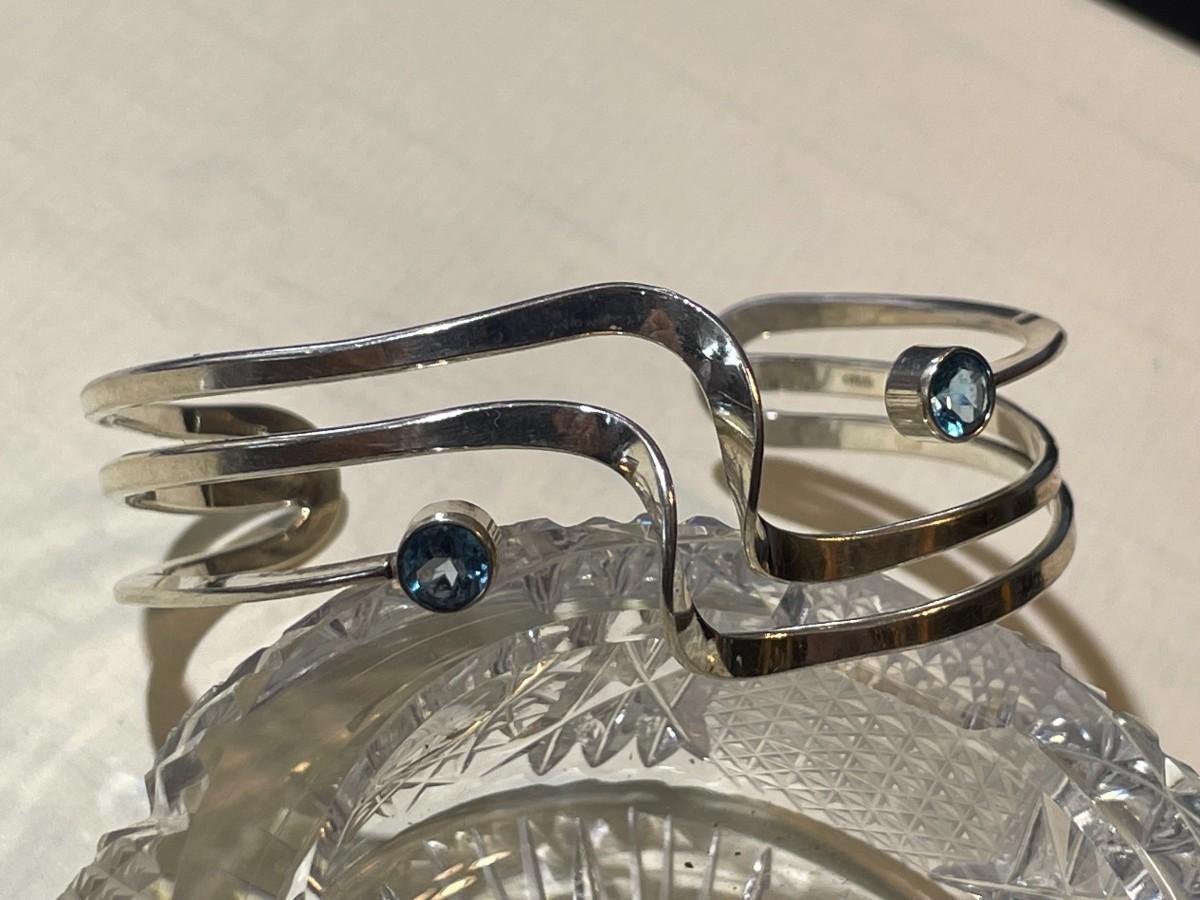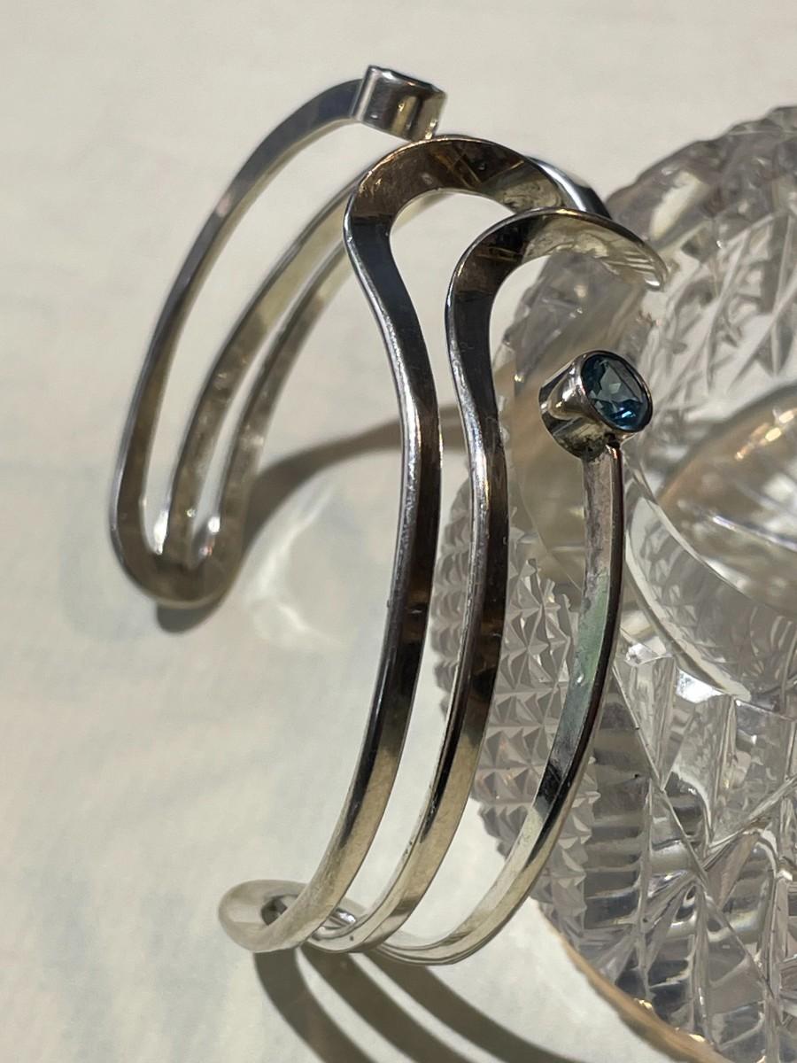 Vintage Sterling Silver Blue Stone Standard Size Cuff Bracelet in Good Preowned Condition.